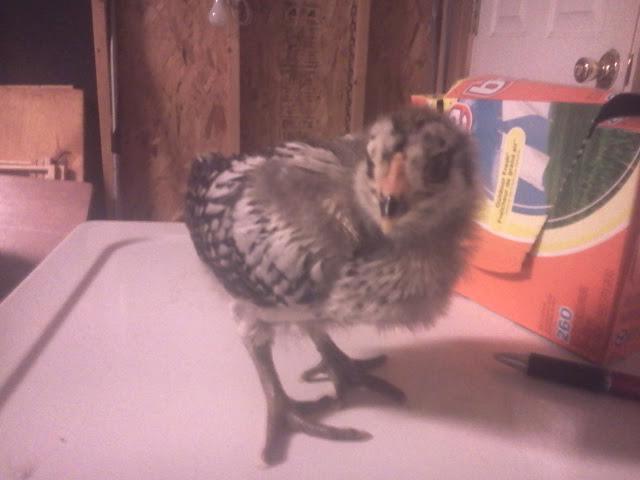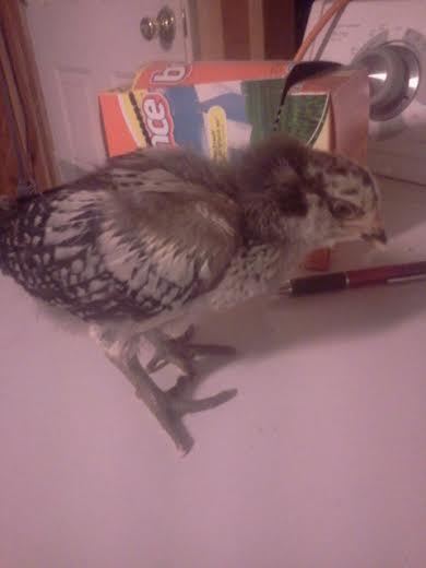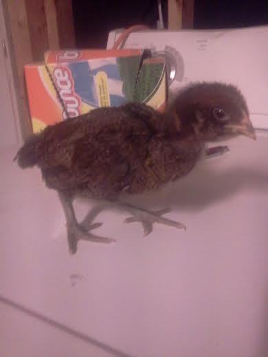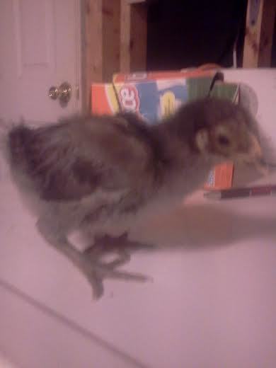 here is the first chick, the mystery chick. I have no idea if it is he/she or what breed it may be???