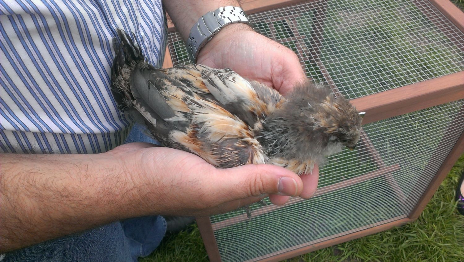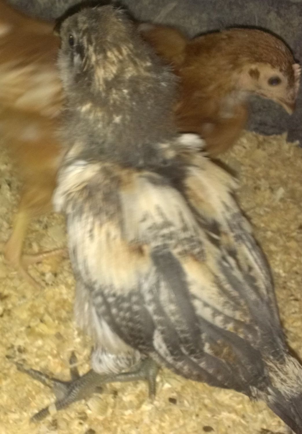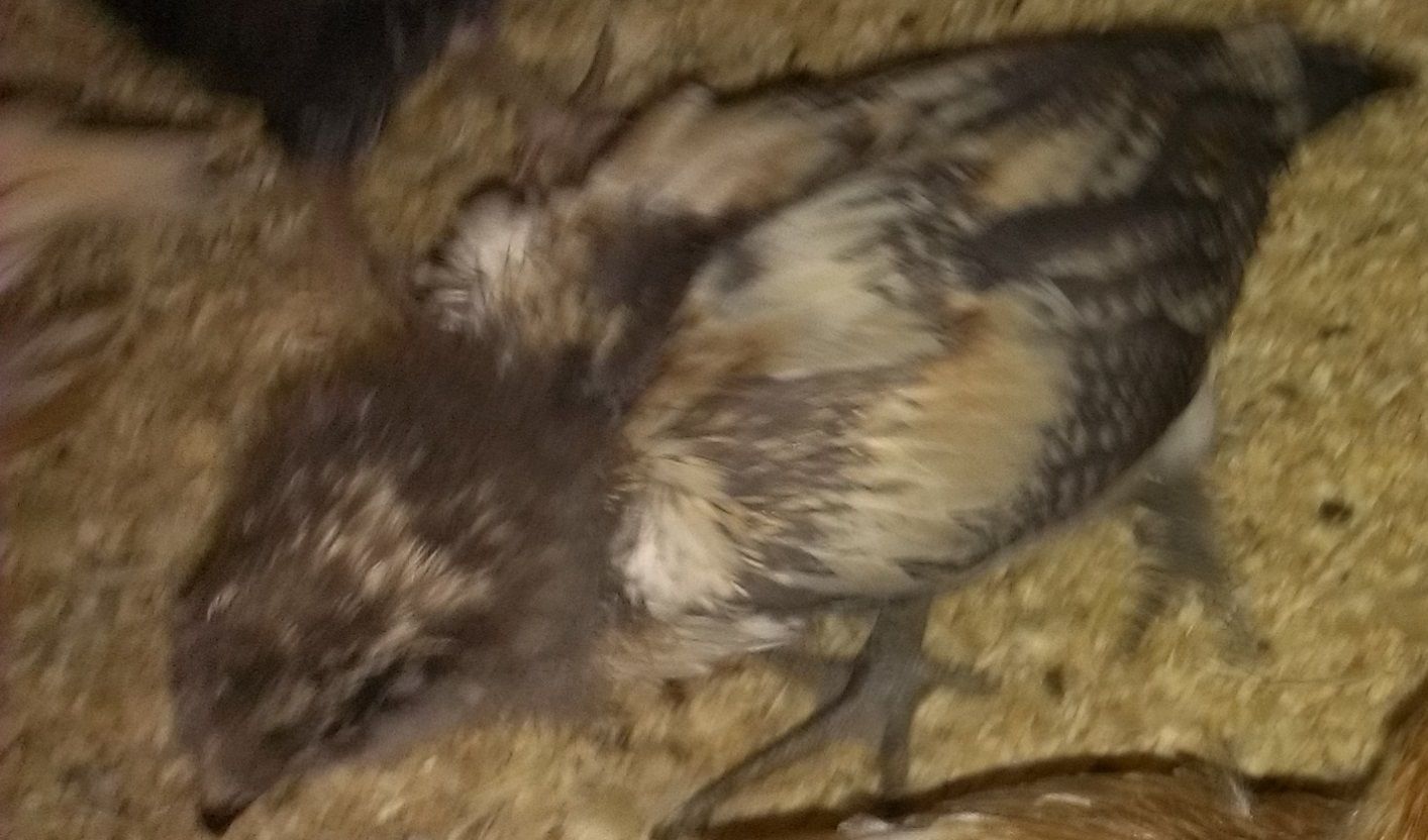 I am a newbie to the world of chickens. Well, not completely I've eaten plenty of fried chicken, so I guess it would be more accurate to say I'm a newbie to raising chickens. I read and researched and with our focus being eggs...I bought some Red-sexed Chicks (6 of them) and then I made the mistake of taking my family to the store to pick them up. So there we are looking at mroe chicks and my wife & daughter decided that they wanted one each based solely on the "cuteness" factor. In fact, this one that I have questions about I believe came out of a container marked "FRYER SPECIAL". The other "cute" chick we got is an obvious Barred Rock but this chick ihas got me clueless. I've been online to try and match coloring, feathering, etc...but to no anvail. Please help me identify this little one.