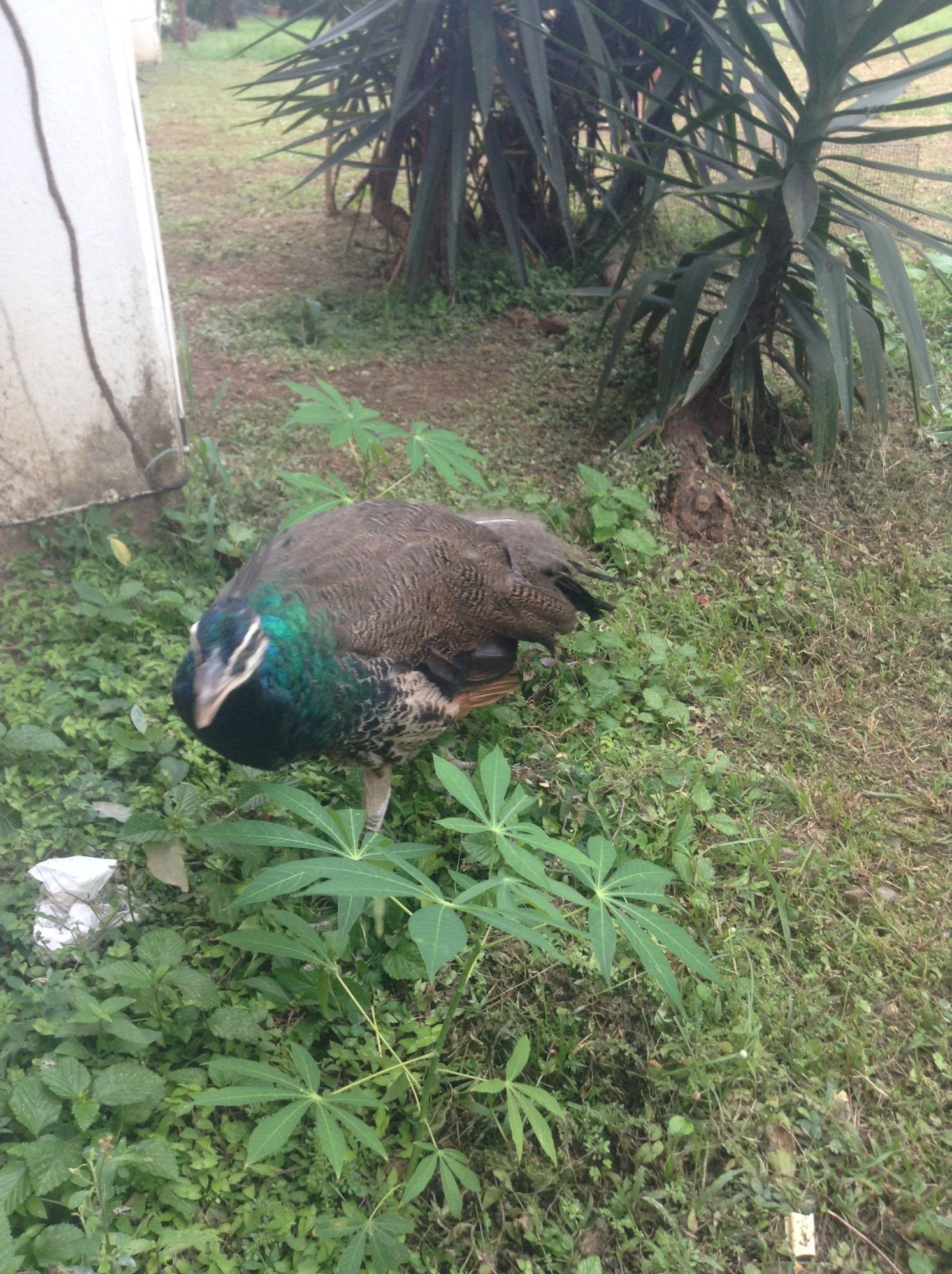 What do you guys think Peacock or Peahen? I'm thinking male because of the uneven feather growth. When my hens fan their tail feathers are perfectly even.