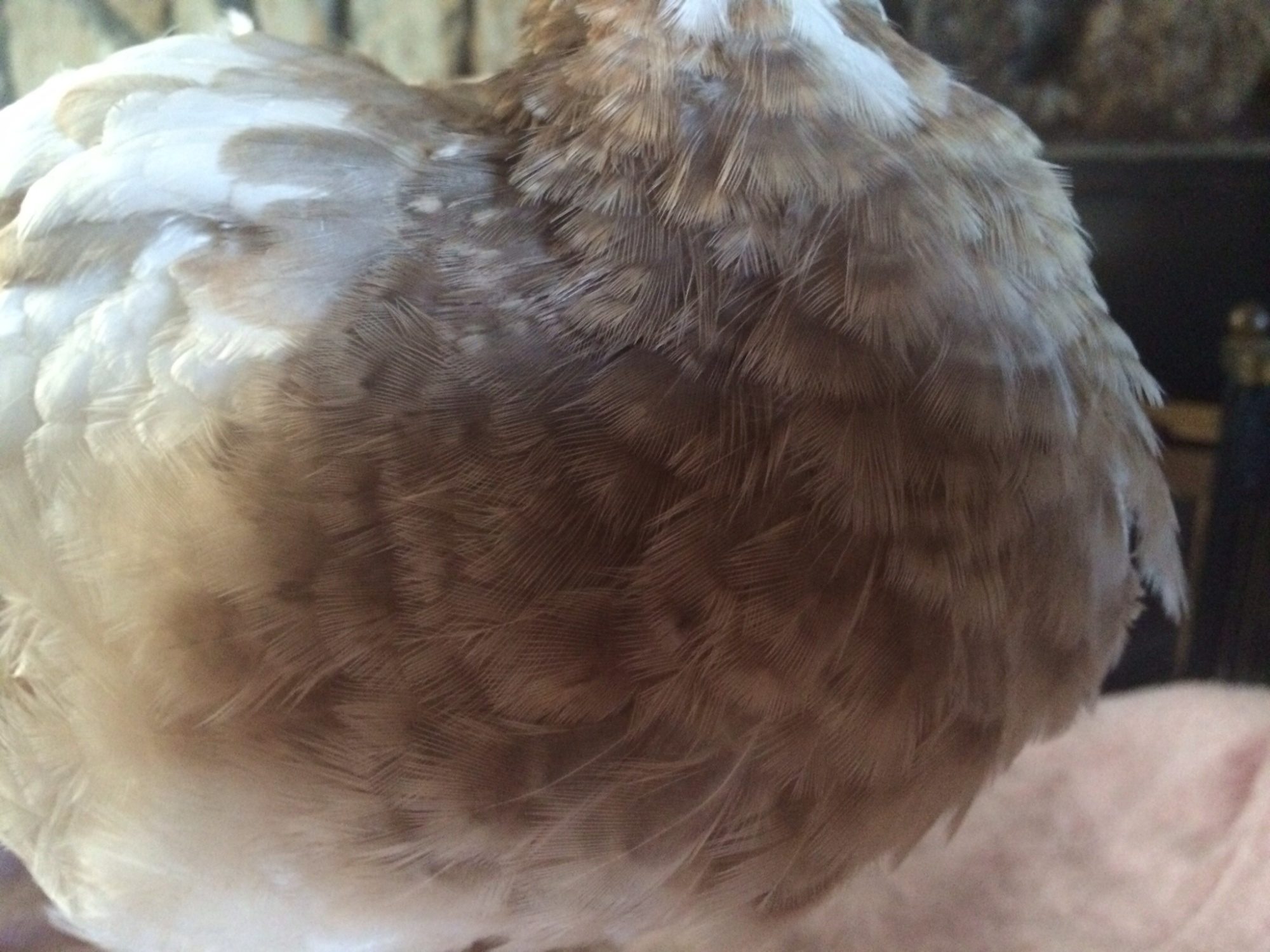 Cameras can be funny, does your little one by any chance look more orangey in person, than it does in these pics? And I'm leaning toward hen because I cannot see any stripes anywhere on it, and usually you will see faint ones on males.