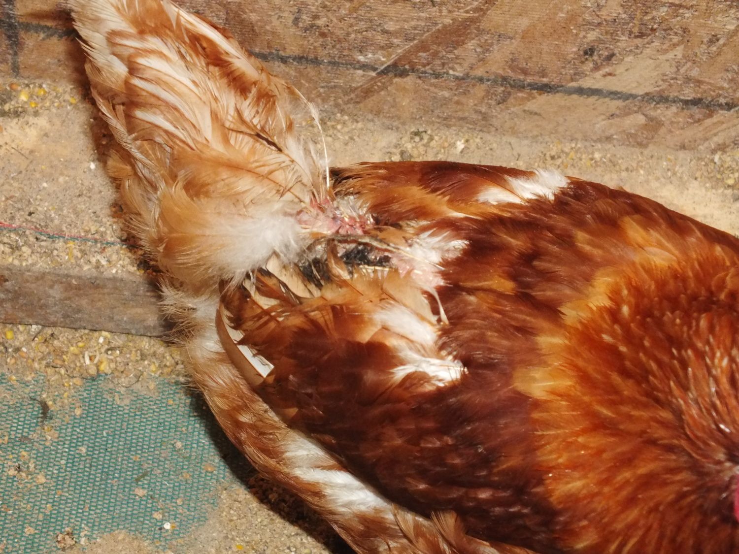 All summer I've noticed my chickens missing feathers and considered they might be moting again, yet it seemed too early. Today I noticed 2 of them with a black growth growing on their skin and 2 others with black starting. I've attached a picture. Please anyone can you help me identify asap because if it is a spreading disease I don't want to lose all my girls to it.