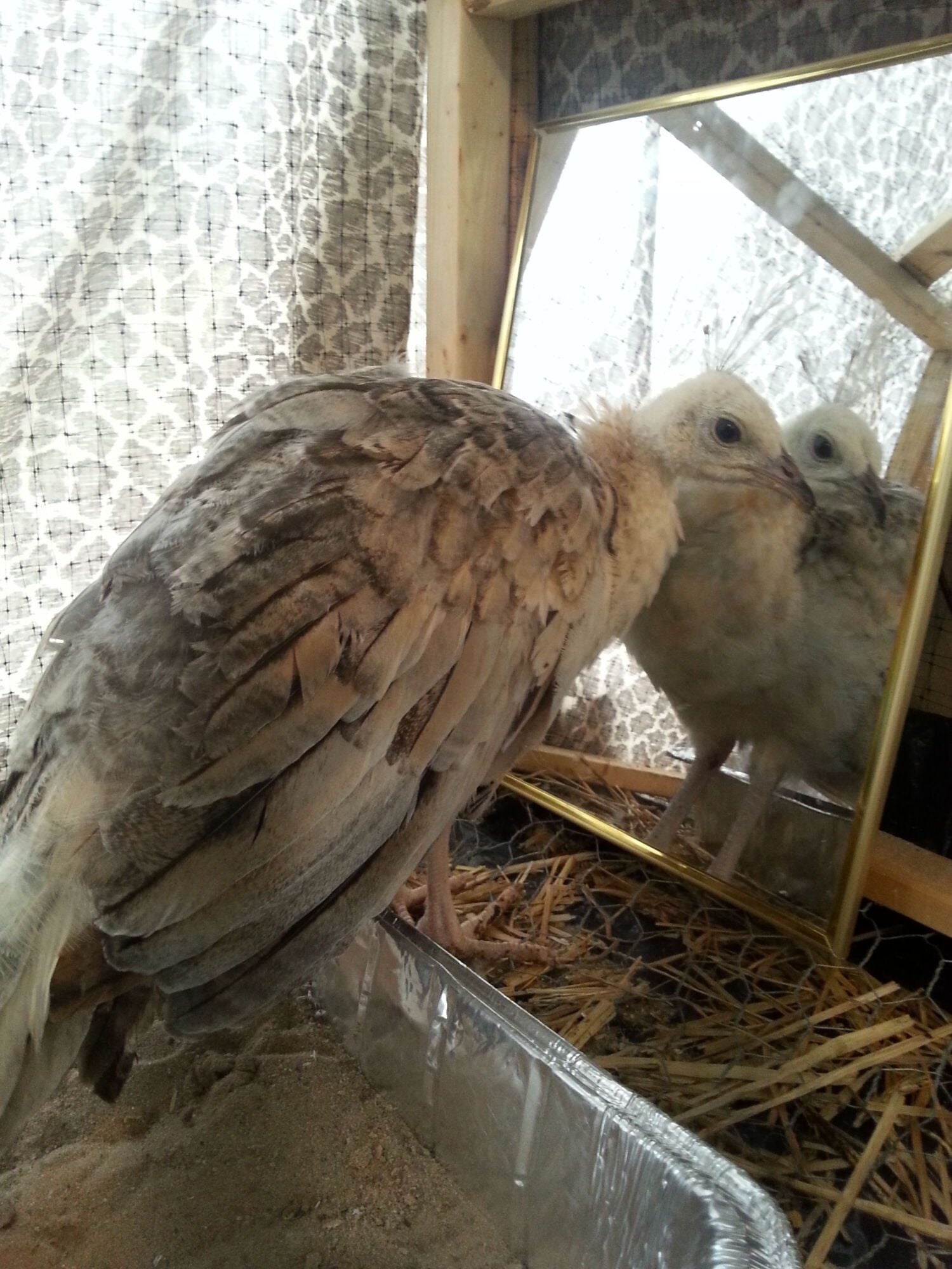 To all of us pea lovers we know that each of our peas have their own different personality and I notice in my pea family that a couple of them are kind of goofy and my black shoulder doesnt run like a normal pea, he will run for a few steps and then start hopping! Its halarious. Until today I haven't seen little eagles personality, all I have ever seen is a sad miserable bird! She is being so funny today looking at her reflection in her mirror lol. I put a mirror in there so she didnt feel so alone.![]()