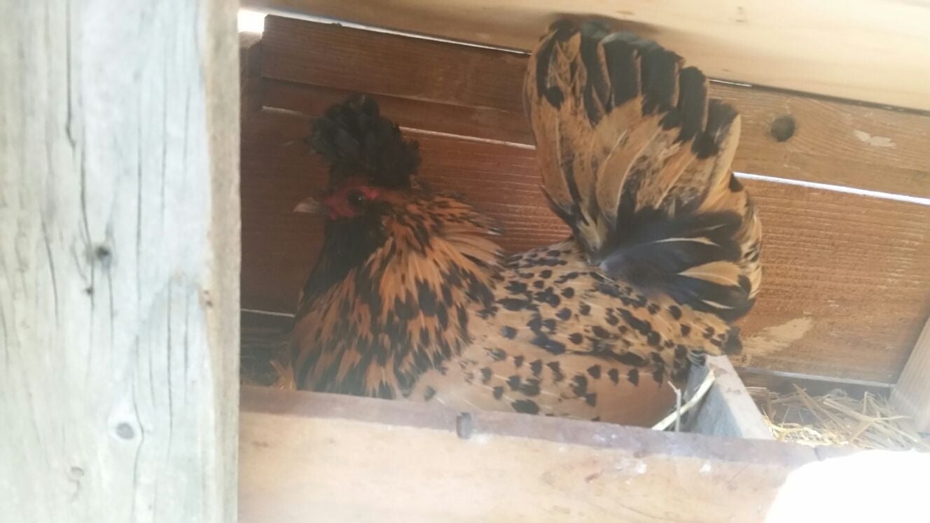 this morning i heard my chickens sounding scared, so i went out and saw my mean cock running at my sweet little poland roo, Palmer. Palmer found a place to hide with another chicken who had been chased, and when i went to them, one was looking at me curiously, and Palmer was laying with his head on the fence and looking slightly lethargic. i picked him up. one eye was open and one was closed. on the closed eye, his mohawk was kinda leaning towards it, and the skin above his eyelid was pale. i moved his mohawk, and he opened his eye. the usually whitish part was slightly pink. i took him to the coop and dipped his beak gently in the water. even though he put up a fuss. he was holding his beak open. his tongue and mouth was normal. i held him close for a couple minutes, and then i set him down. i tested his instincts by taking quick steps toward him, and they were fine. i got him out of the coop and as soon as he saw all the others rushing towards him, (even the mean cock, who i scared away before he got to Palmer.) Palm ran back into the coop to hide.