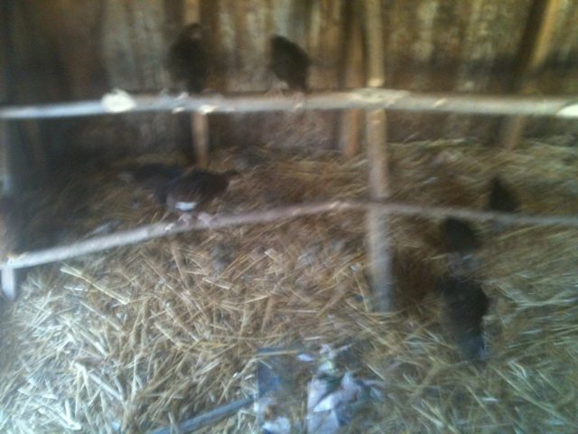 We just finished our roosts the other day.... The chicks are still down in the basement under their heat lamp. They should be big enough to go outside in the next week or so.