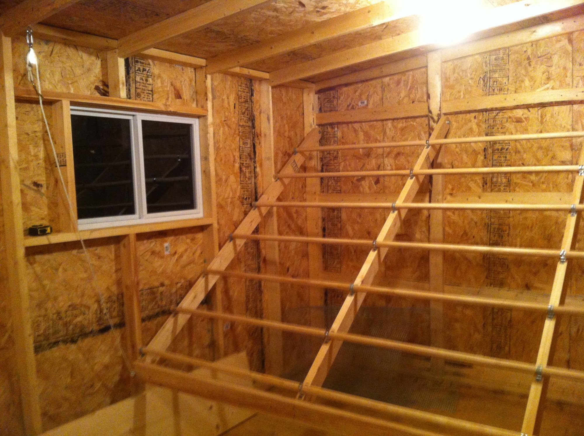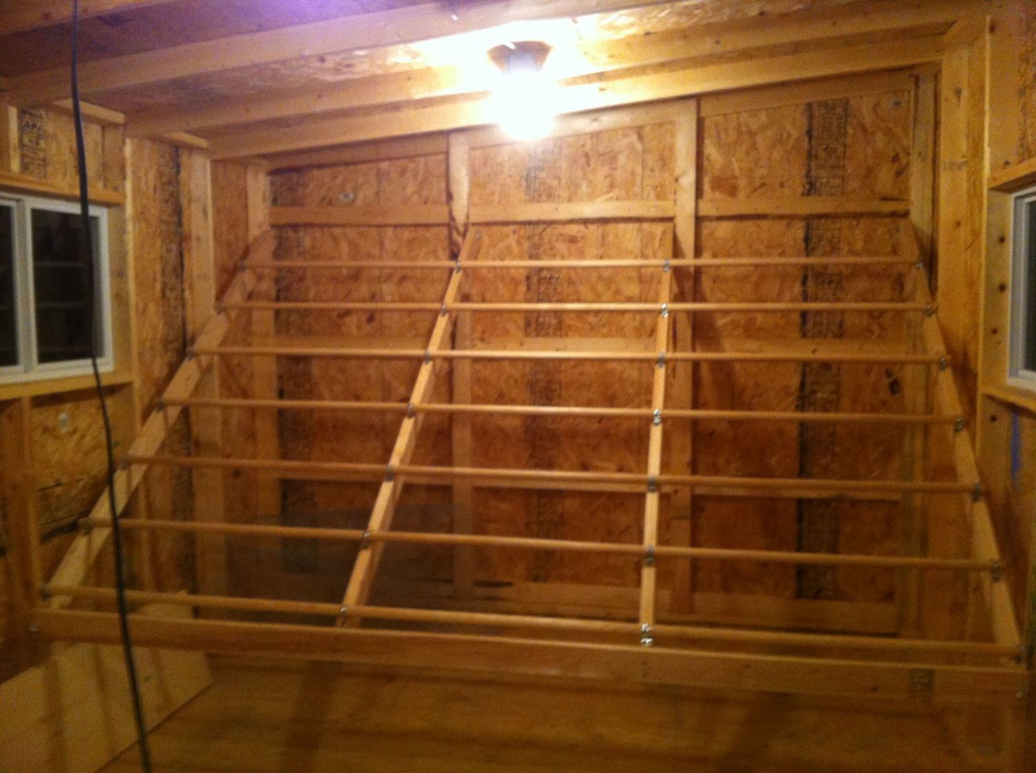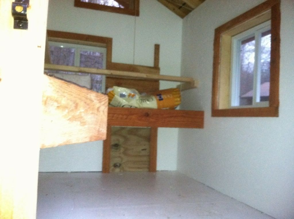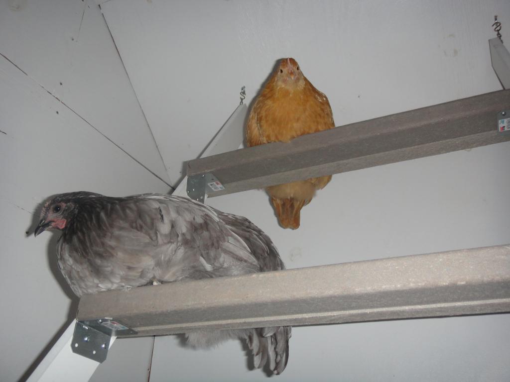 Here are some pics of the roosts in my new chicken house. I know that some folks frown upon the dowel rods, but I did a lot of research and in my climate, they seem to be fine. We did buy the biggest rods they sell! Hope my chicks love them!