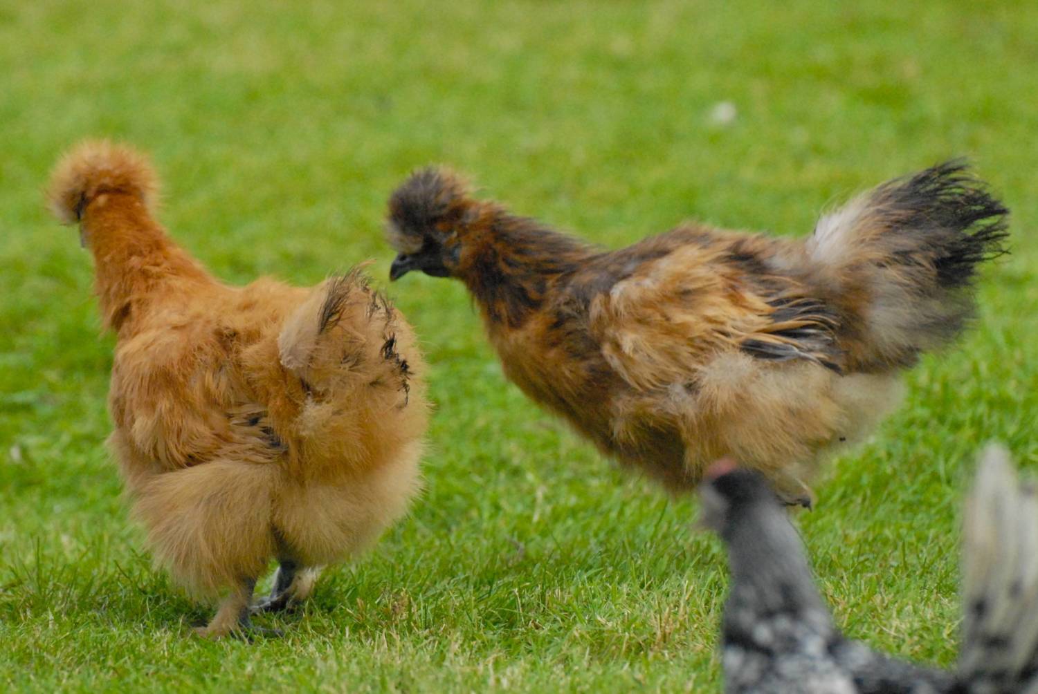 The partridge and the lighter buff/gold ones walk about very tall and proud, the tail feather carriage of the brown/partridge is much more pronounced, to the extent that hubby has commented too that he feels it strutts more, more ostrich like if that makes sense, the darker gold and the white along with our black confirmed egg laying hen are just generally rounder in body shape and pompom head feathers when they move about they generally look "round"