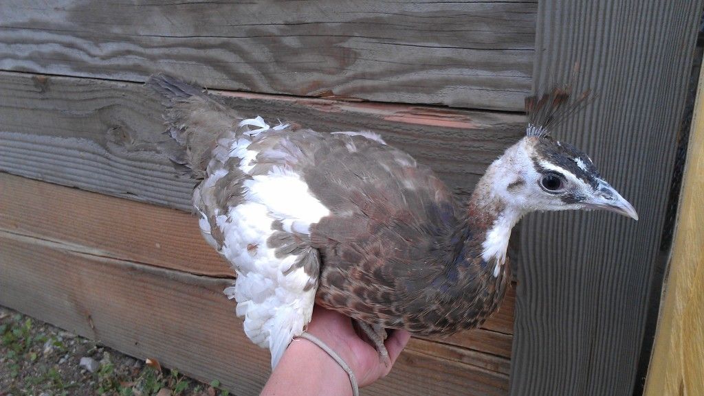 new 2 pfowl, Wylie and Watson (Black Shoulder Silver Pied) are the only two named, and I named them the first day they were home. I've named SO many animals it's getting tough to think of new names. I've been trying to think of good "pair" names for these guys. Like Thelma and Louise. I'll get some names soon don't worry!