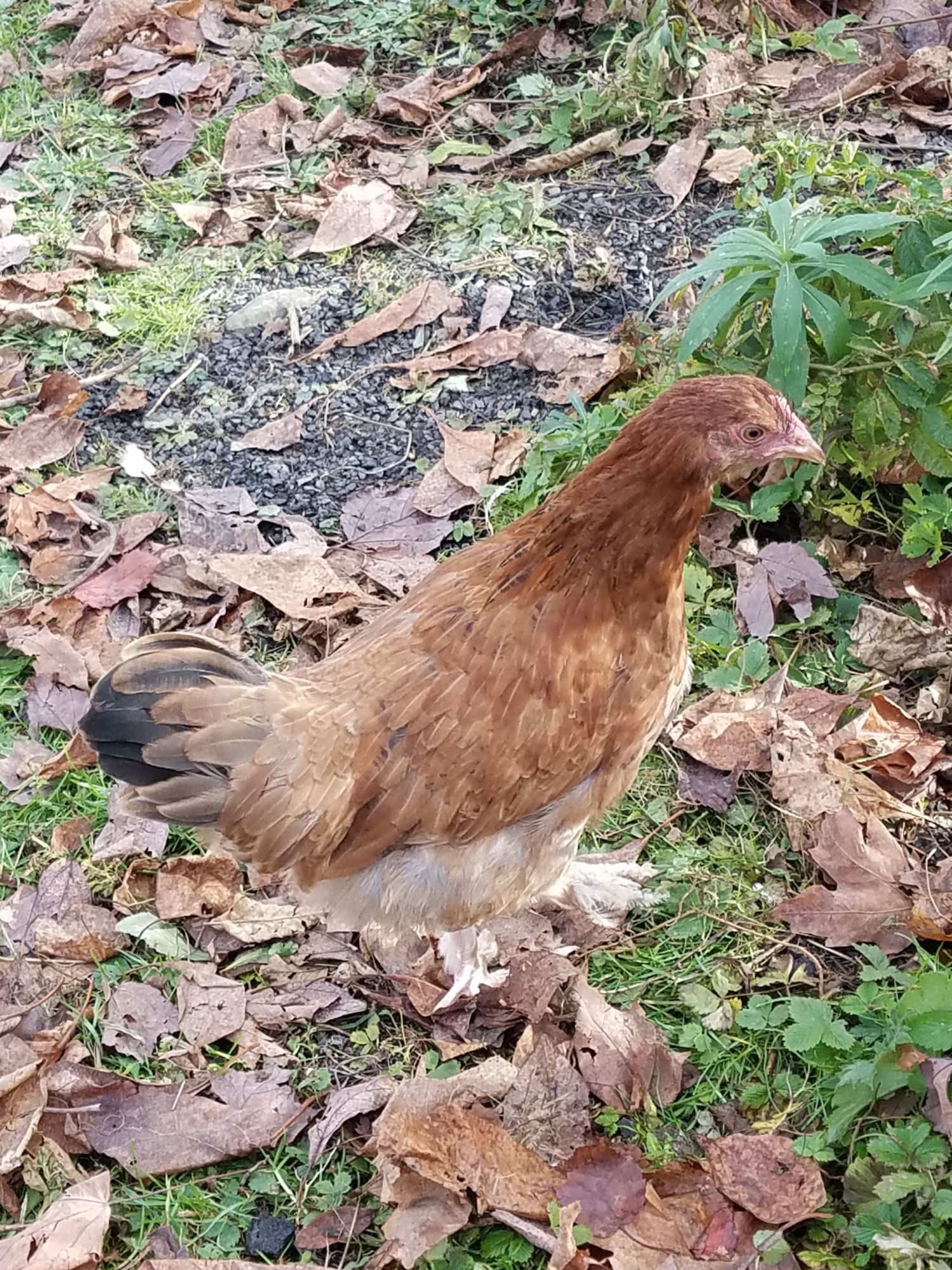 Can't see the comb, thinking Brahma or Cochin pullet.