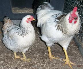 Here are some chickens I got a couple years ago. Mom and dad. Are they Rocks? What color? Columbian? In any case, they got a new home. But not before I found...