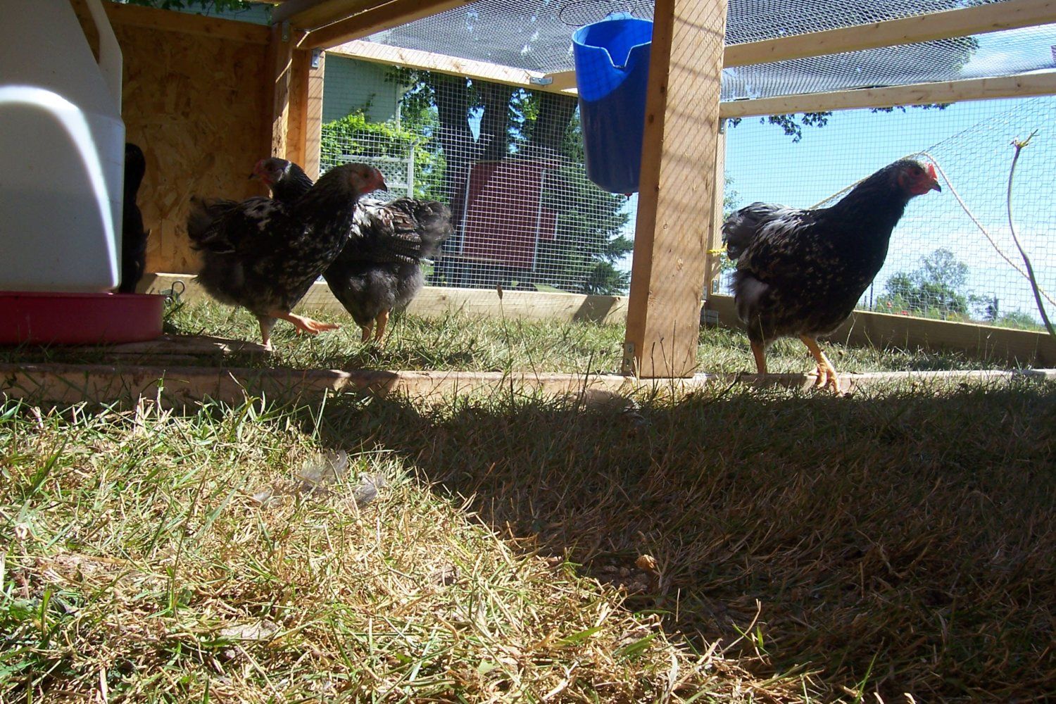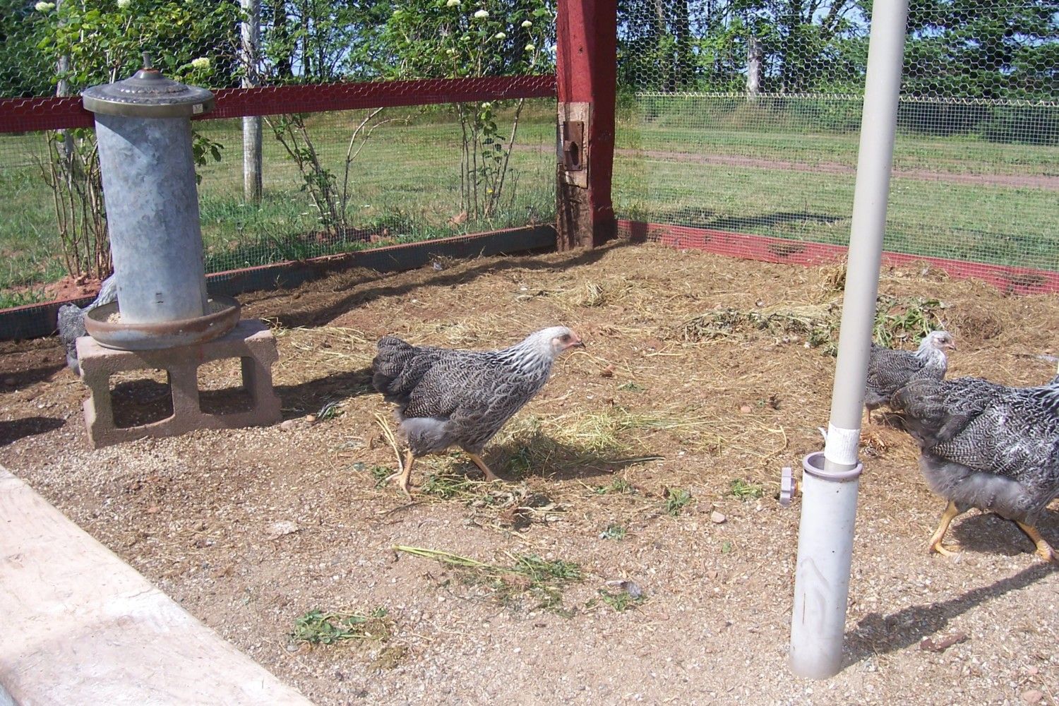 If you want your cockerels to get along make sure you run a mature cock with them with no more than one hen. It's the only way to be able to retain your cockerels in good confition up until the proper age to cull.I killed 2 of my roos at 12 weeks old. They were constantly causing trouble. Unfortunately, they were the smallest 2 roos. They dressed out 2.5 pounds each. They tasted good. Things were more peacefull with the flock with them gone. Other 2 I roos got along pretty good until about 16 weeks of age. Shipped 1 roo off. July 10th, right at about 19 weeks got 1st 2 eggs. Couple days later 1 hen dies. Have 3 hens and getting 2 eggs a day. 1 hen, scooter hasn't quite got it figured out yet. She sits on nest for awhile. No egg when she gets off. Both Wanda and Marsha started out laying small to medium size eggs. Wanda is now laying large eggs.