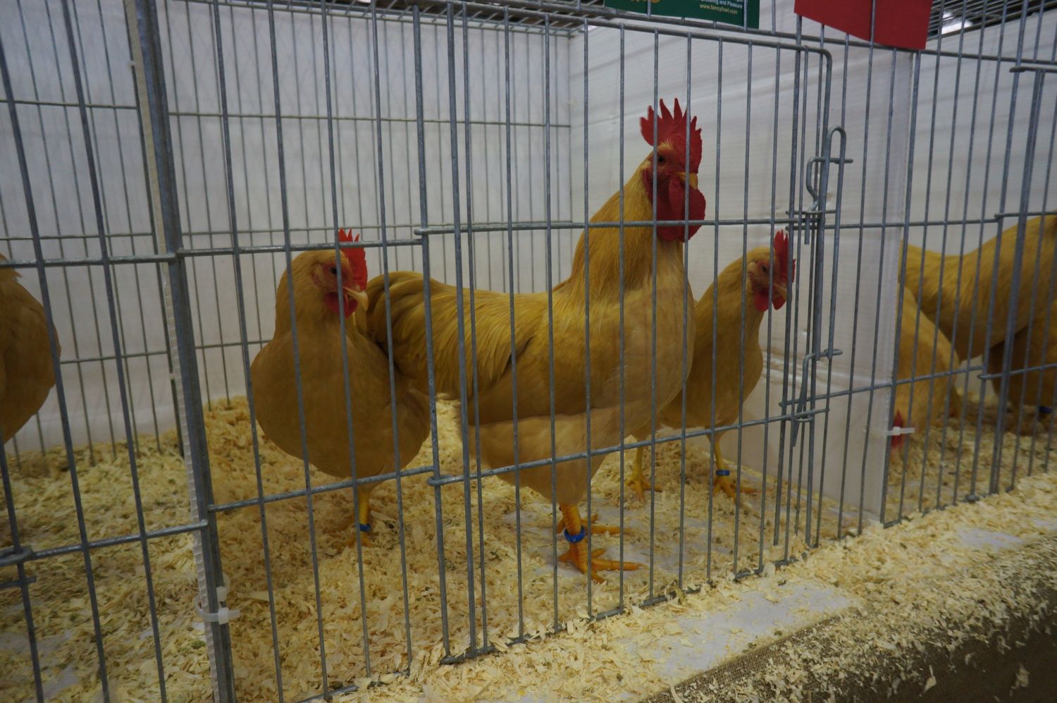 He has sent pictures of them to me off and on. The standard for Rocks in England is different so dont be to harsh on these birds. I am sure they are breed very closely to their standard. The buff bantams have the best buff color I have seen. There is a friend of mine who has some English Buff Rock Bantams in New Hampshire. I often wonder if they still have the nice color as the current English Buff Bantams of today. Great view of the show Hall.