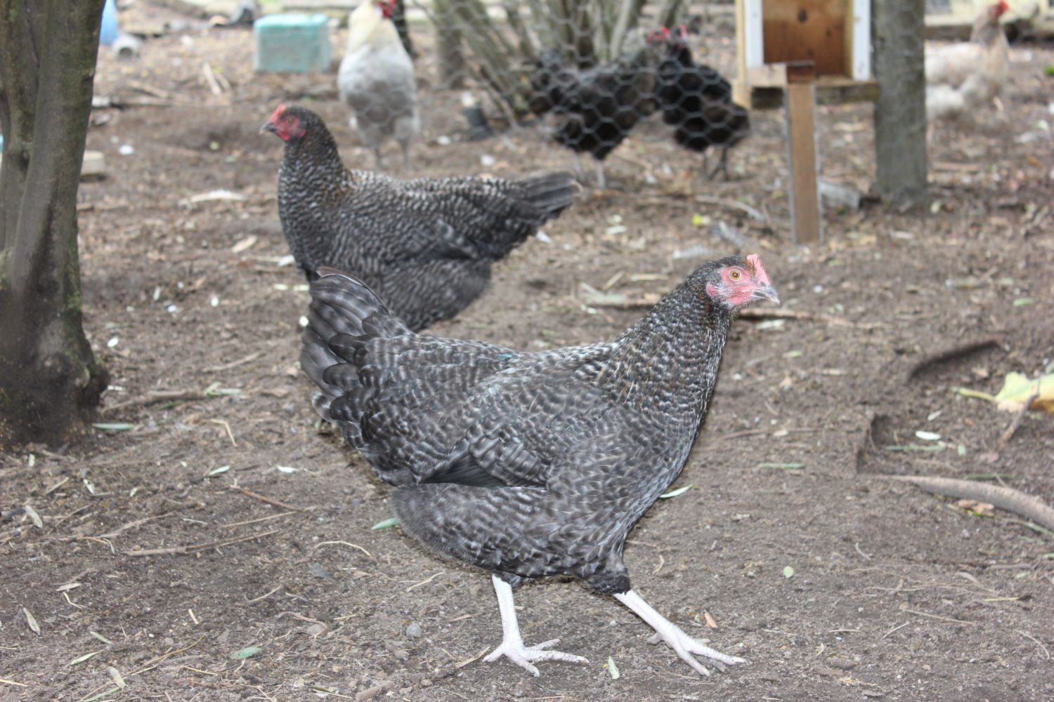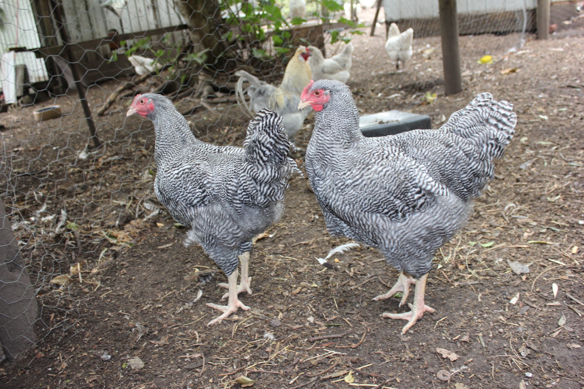 I have 2 barred rocks in my young flock, both were straight run and its looking like I have 1 female and 1 male. unless I can build a sound proof coop and run the male is going to be dinner eventually. They are the friendliest birds in the flock so far and love to eat from my hand. often grabbing from my left hand that holds the bugs and worms when I try to feed with my right. The one I assume is a male has crooked toes and I am not sure if that's normal but the bird seems to do fine scratching and walking. I also noticed that they eat slugs which is a benefit to my nursery.