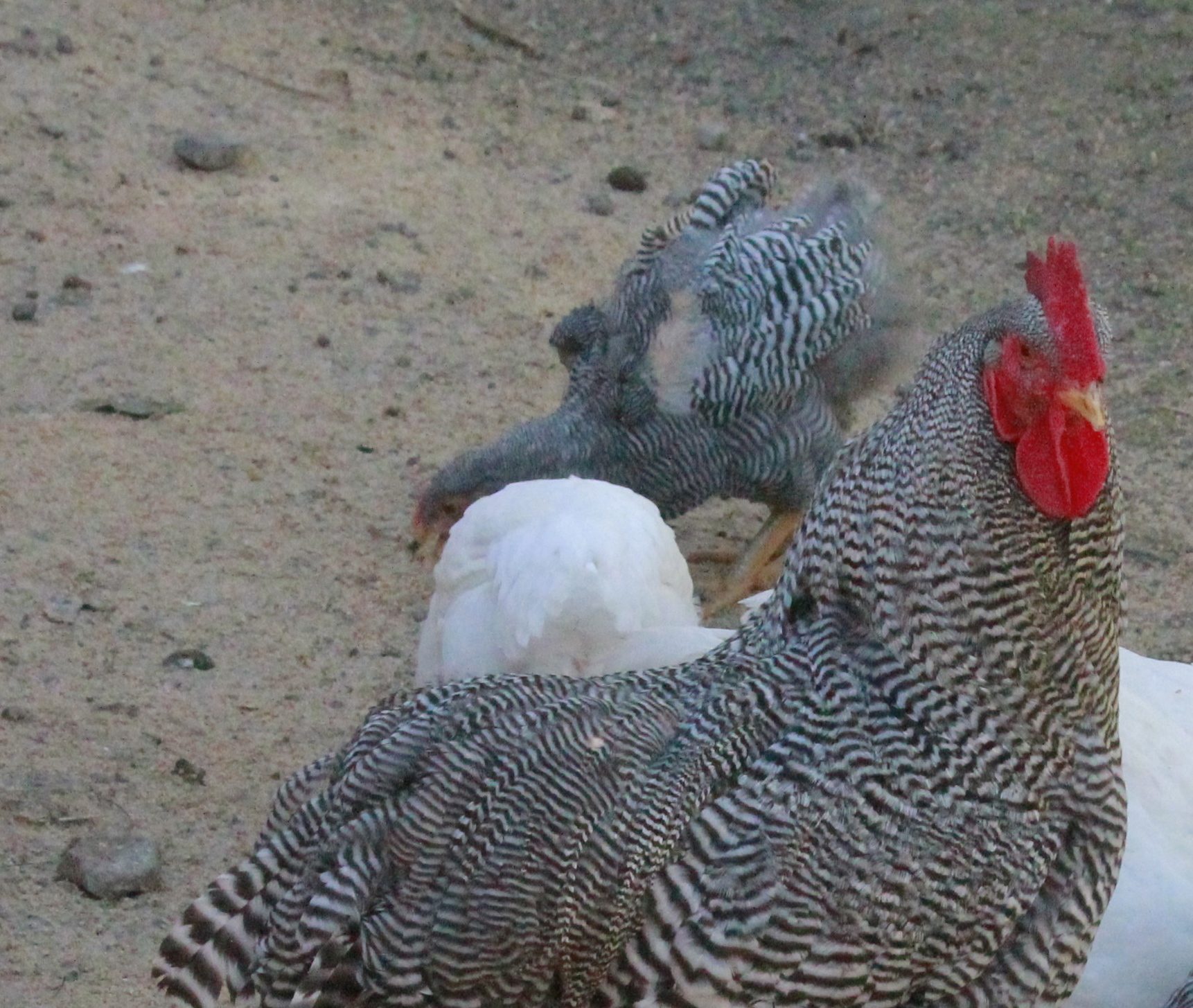 That's what I figured. I have so many nice boys to choose from. One has really fantastic barring and great type at the same age. I have been keeping him under lock and key (not really - but protected) in with the silkies.. Hawks have already killed three of my heritage rock juveniles. I can't risk my best during migration time.