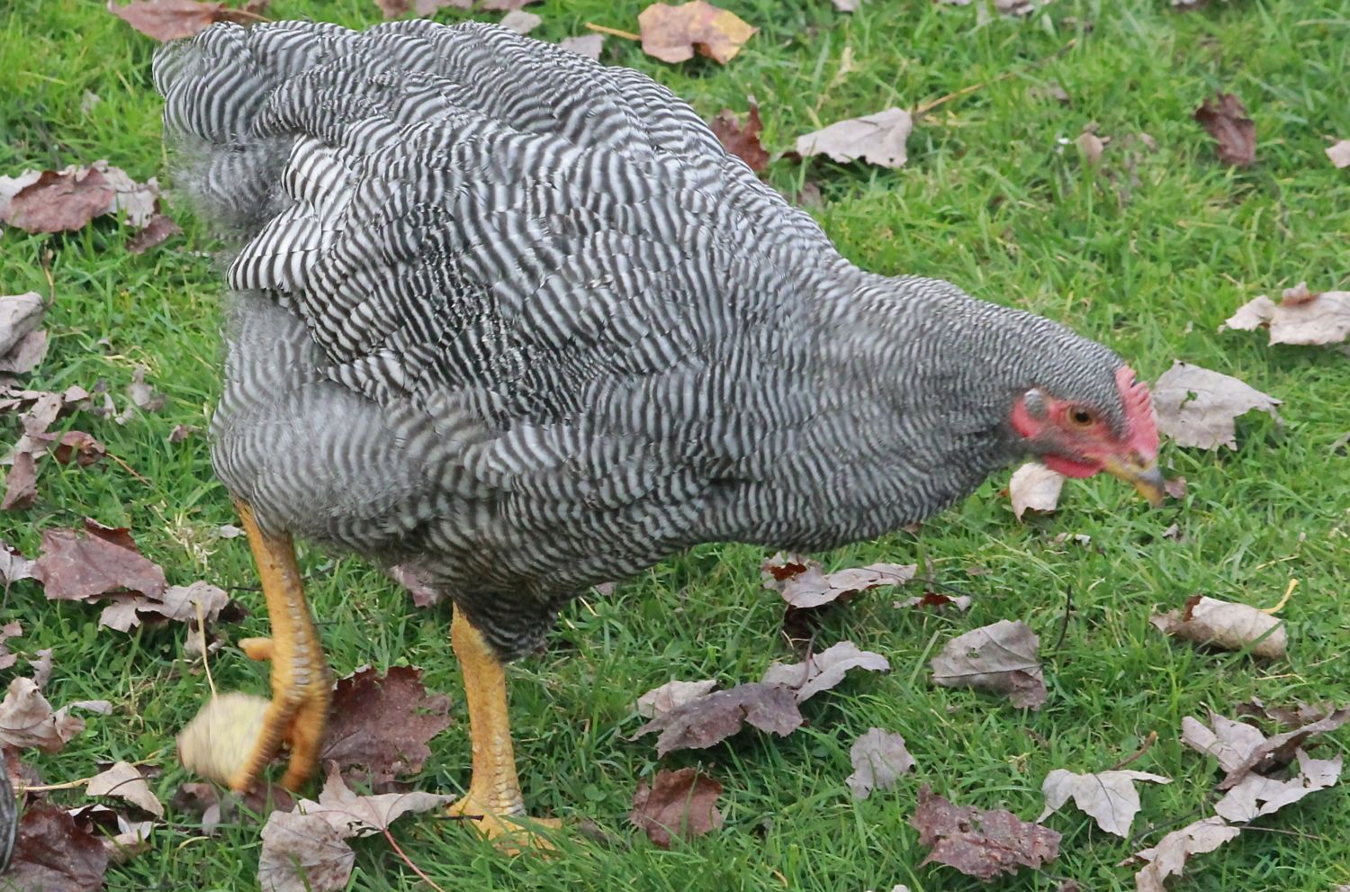 You remember my Indy? He has one of those FREAK BIG HEADS you're talking about. And he's as tall as my knees, too. Dang, Fred, I wish you could see him in person. He doesn't have the great tail set of his late Uncle Rex (well, he barely has a tail yet, so hard to truly judge that), but he sure has size of his Stukel mama, Ida and Delaware Dad. If he grows into that frame, he will surpass sire, Isaac, in size. And the wing carriage on him and his brothers is fabulous-something I see lacking on some of the really gorgeous BR roosters.