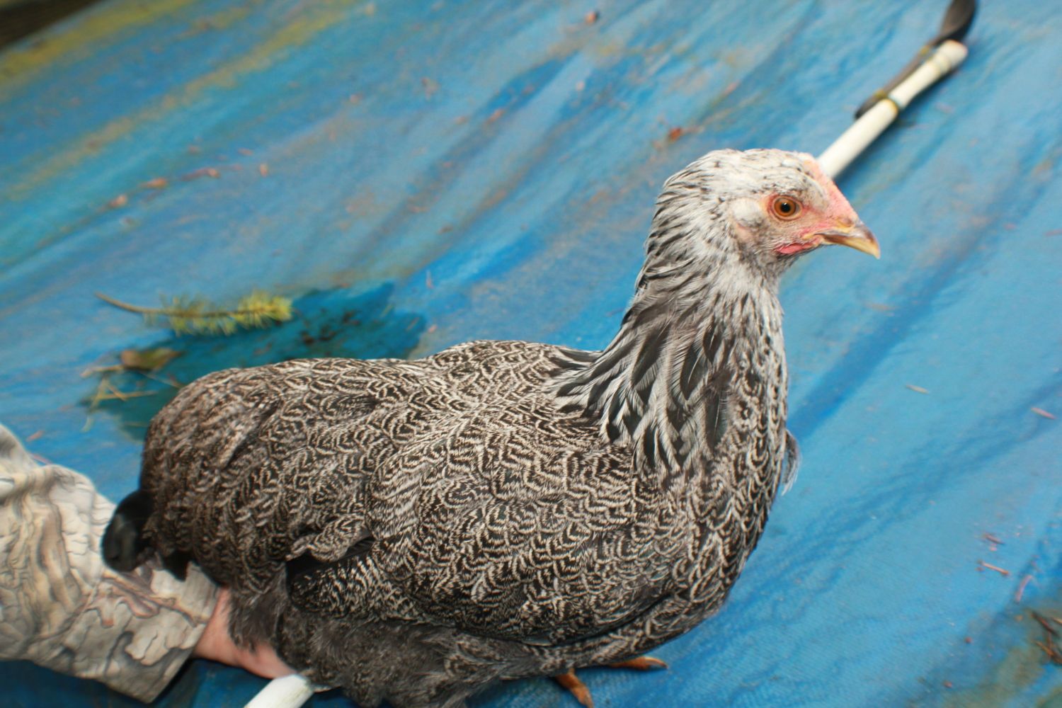 This is my only SPR and I am trying to get more from Mr.Horstman. Please everyone tell me what you think. I am new to grading chickens. She is 19 weeks old. We had eagles in the area so they could not come out i had to hold her for pictures.