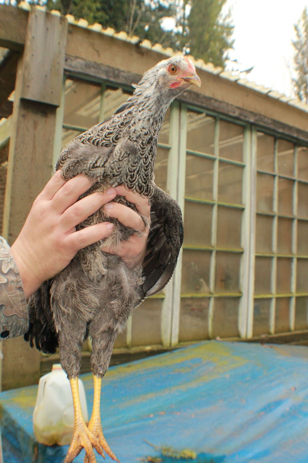 This is my  only SPR and I am trying to get more from Mr.Horstman. Please everyone tell me what you think. I am new to grading chickens. She is 19 weeks old. We had eagles in the area so they could not come out i had to hold her for pictures.