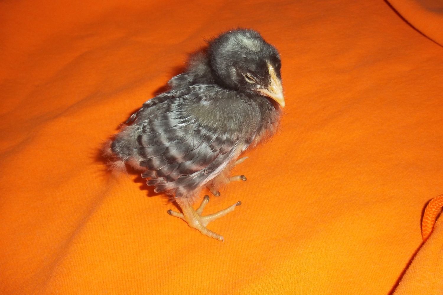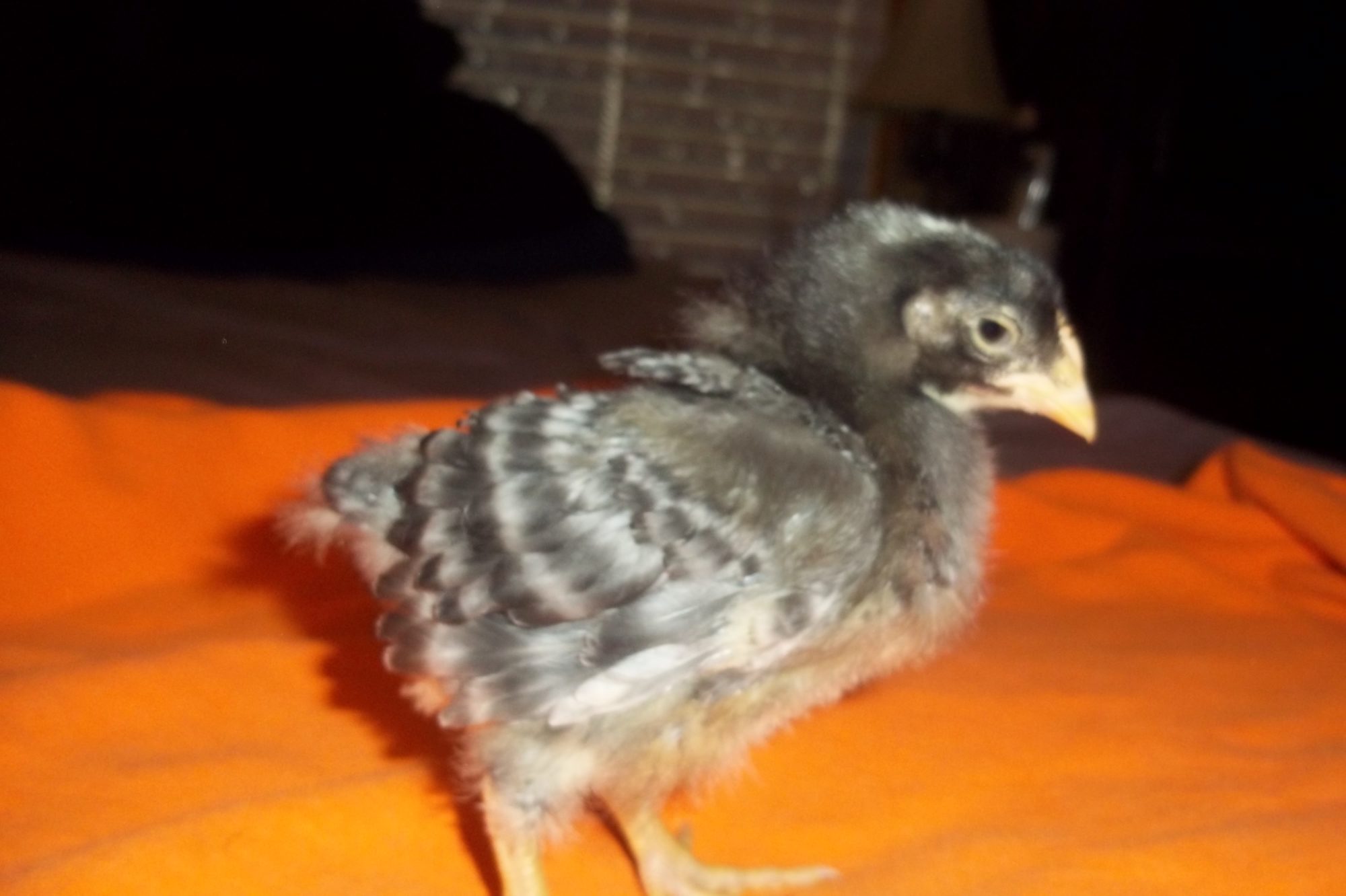 He is roughly two and a half weeks old, my fiance bought them for me on the 9th of March along with 7 others. I also had a flock of 6 at home. But this one is worrying me with how he isnt growing. My other 2 week olds are getting huge and feathering out where as he isnt.