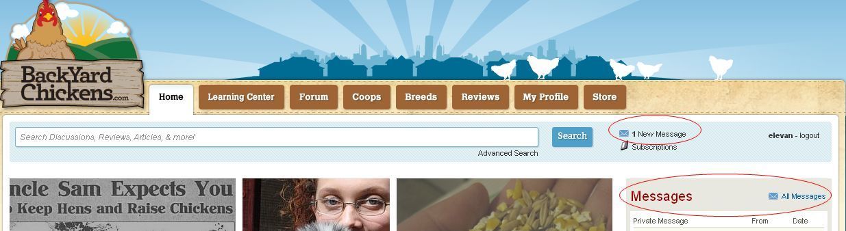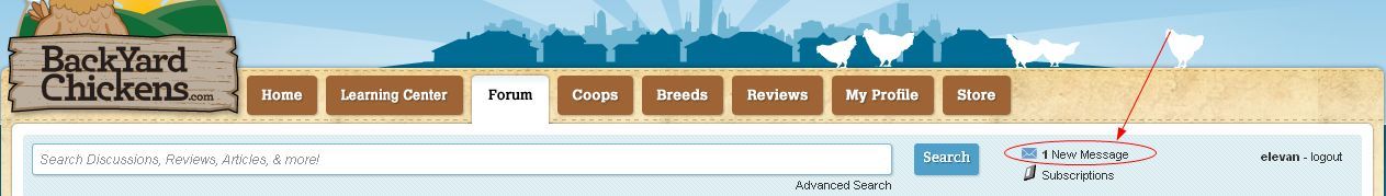 In the almost-top right corner there is also a thing that says '[the amount of new messages you have] new messages'. You can click on that to go to your messages.