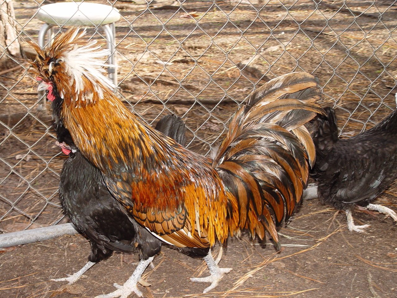 Back in Dec. I acquired a trio of Polish chickens. The hens were White Crested Blacks and the rooster looks like a mix between a Golden Lace and a White Crested Black.