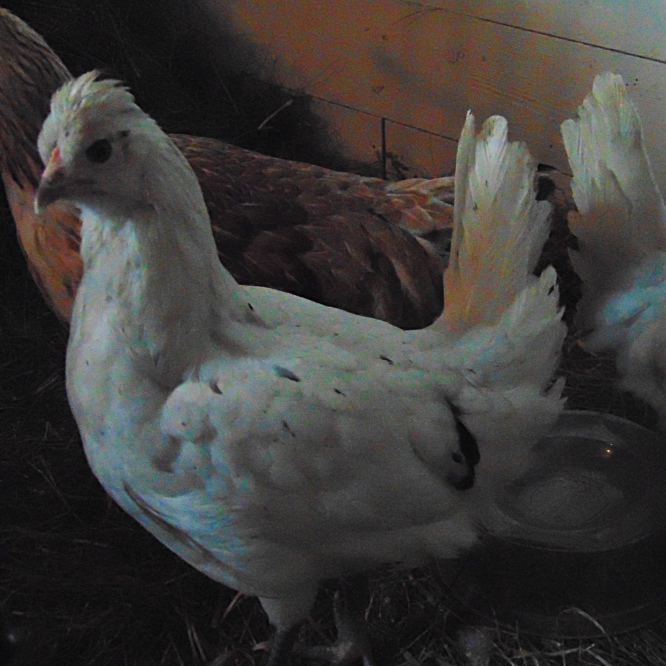 I'm so hoping a Pullet but it looks like it had a pea comb that is poking up pretty good. Not really sure if it's because of the crest or if it's going to be a cockerel. Pullet please.