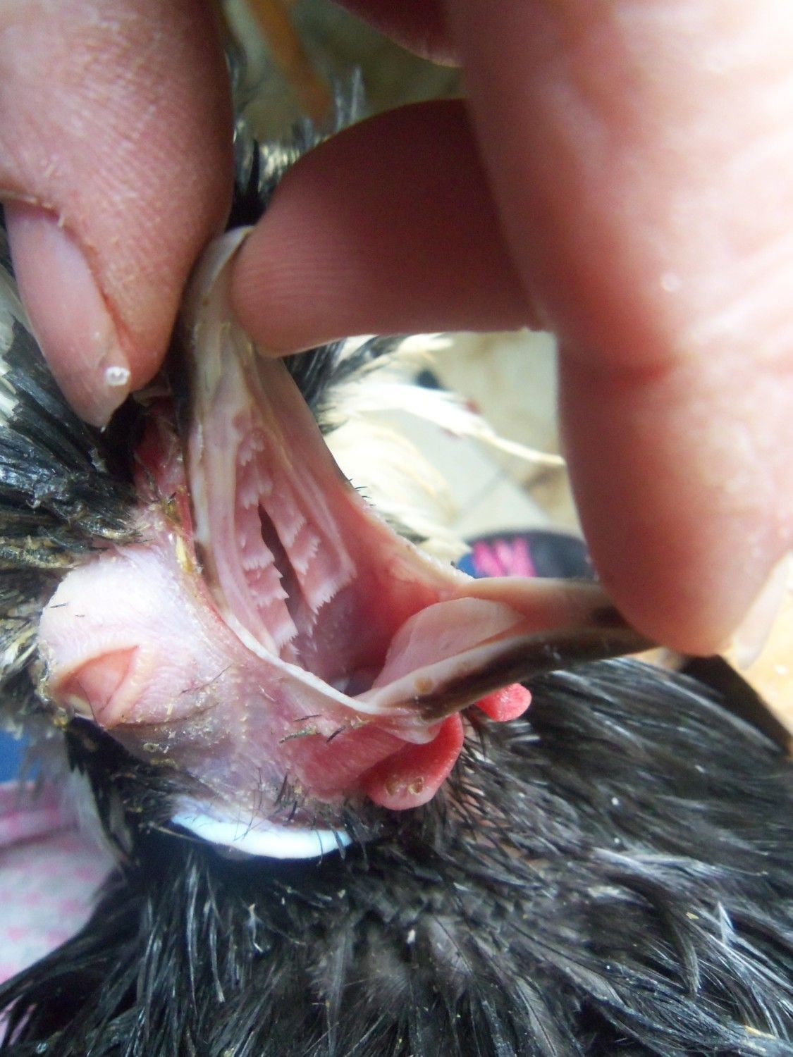 and inside his mouth...(this photo was taken before removing the pus ball..hence why the eye looks so bulgy)