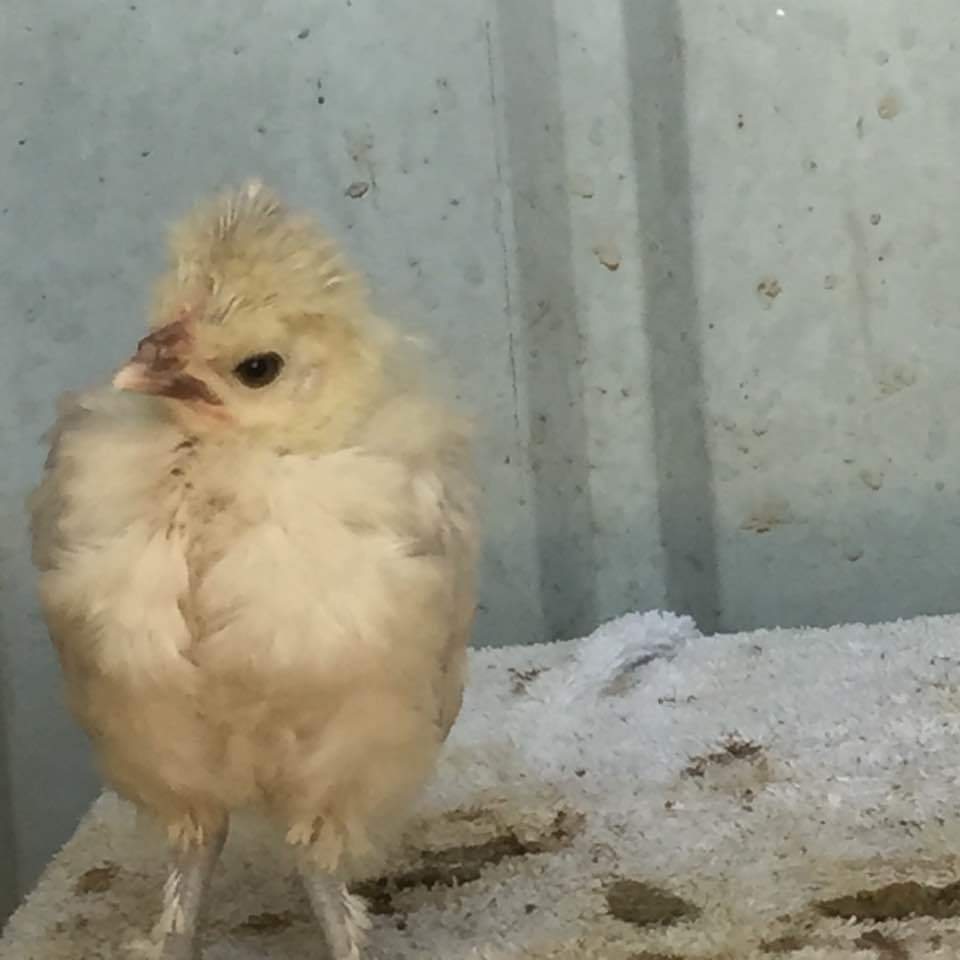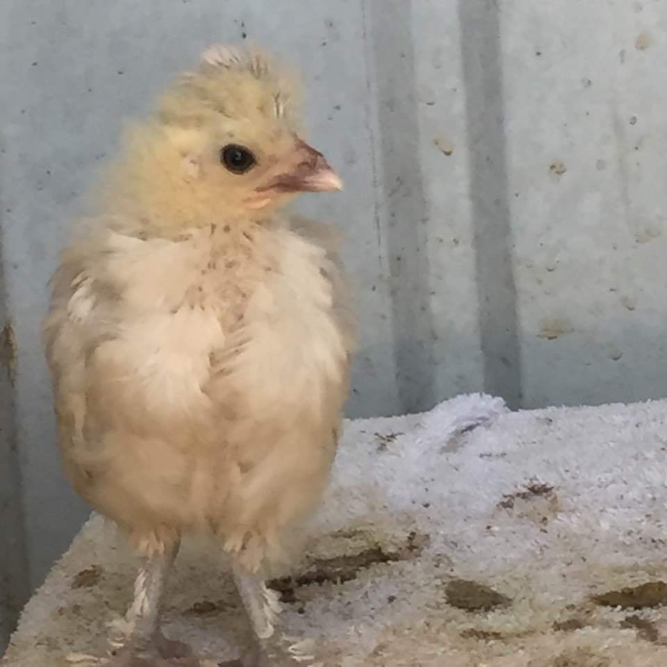 Hi all, I'd be very grateful if you could kindly take a look at these two photos of my Polish/Houdan bantam and see whether you can tell the sex? It is 4 weeks old. I am hoping it's a pullet. Thank you in advance.