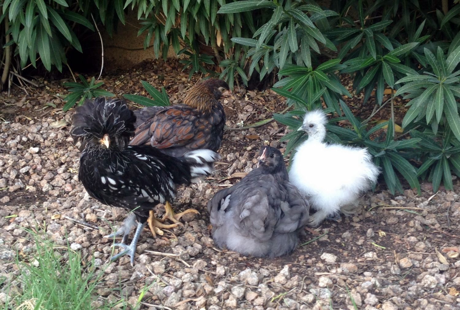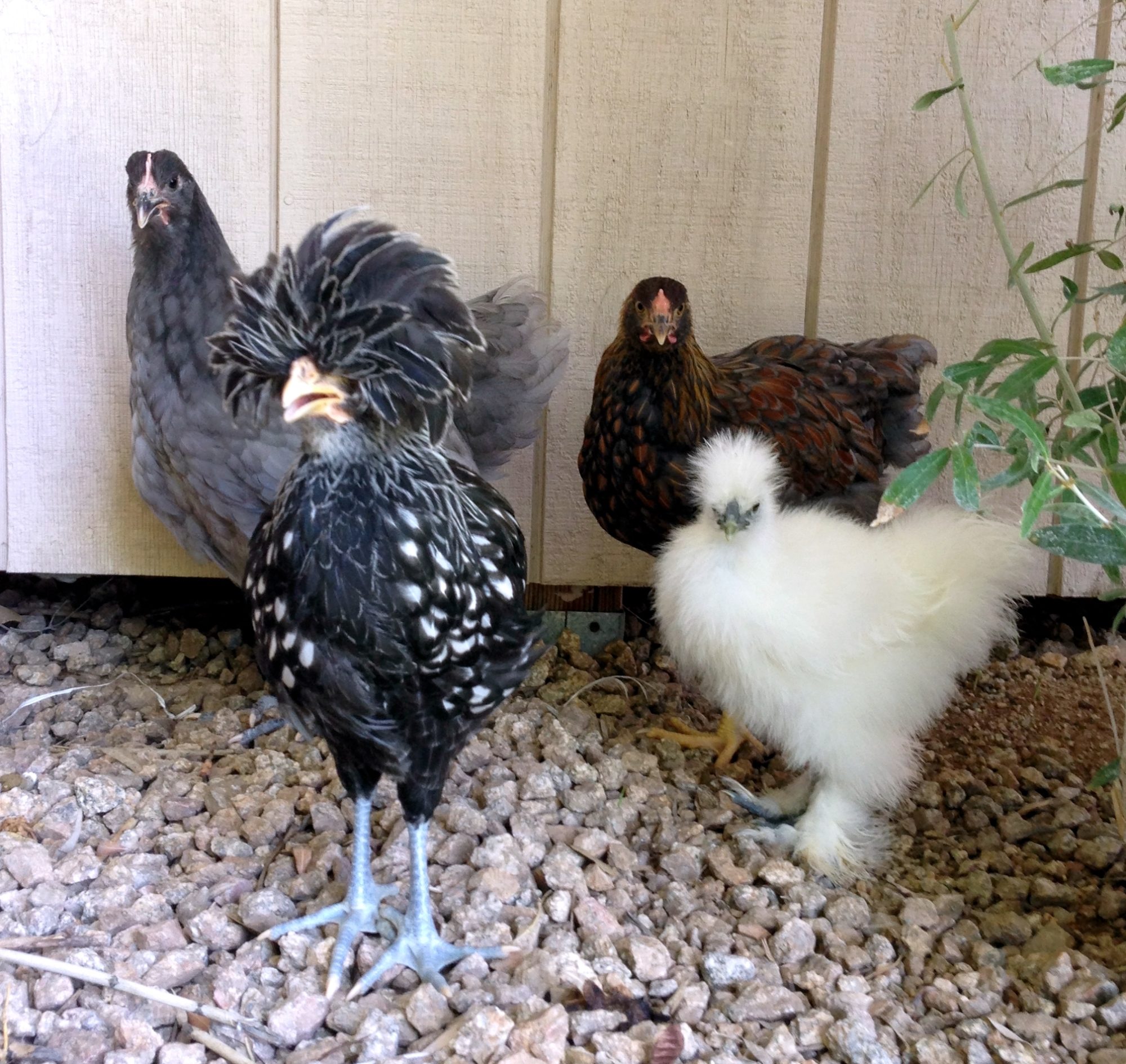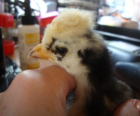 Do you have an idea on the color for the last chickie? I got her from Ideal.. From the chick pitcures on the website she looks like a white crested red... but her feathers are coming in like a weird color... hmmm Lol.