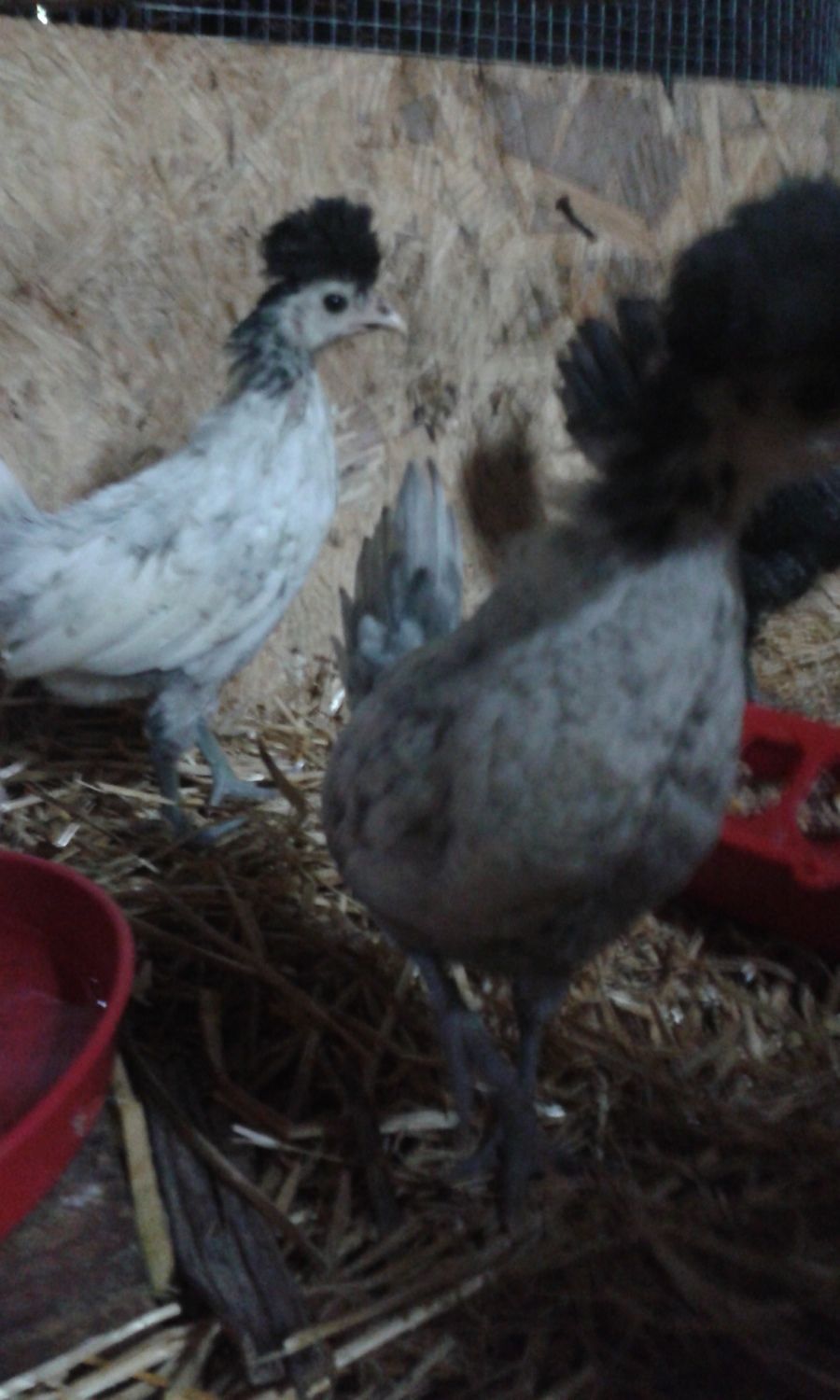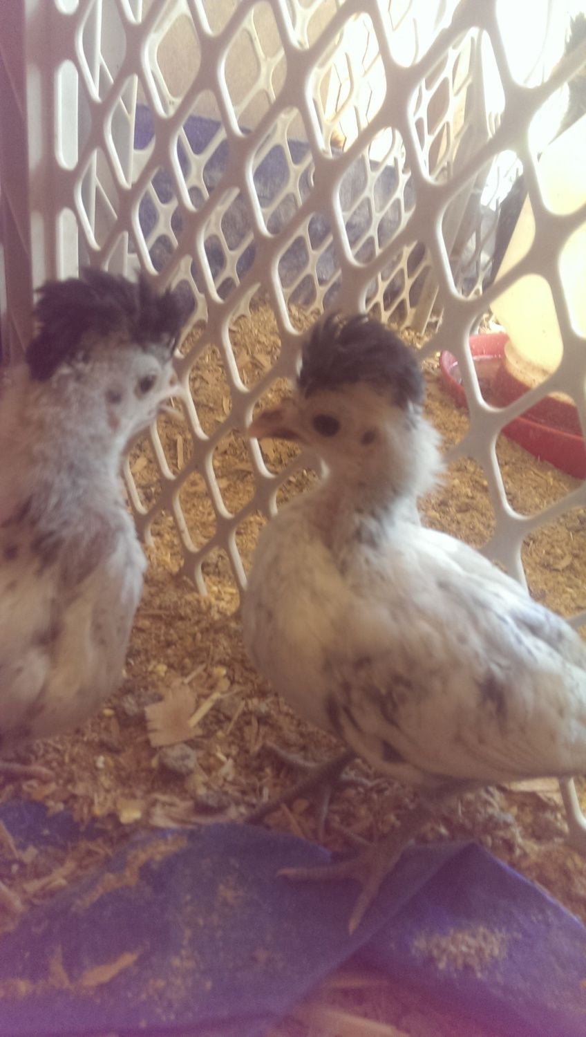 Indeed they are and not too bad really...it looks like a pair as well. It's a good start. My trio came from a lady in here in Middle Tn. they were the result of the second generation of birds that were originally gotten from a hatchery up north. She said they were the best of a 1yr breeding program. Those would be a good first generation. Bu just so you are fully aware the white birds you have, have a counter part that has a jet black crest, and black laced body. I think you could breed them to the white with a white crest and get some more good first generartion birds.I have one like that that, I'll take some picture and post for you!