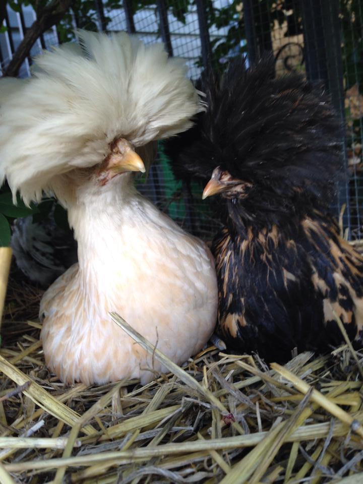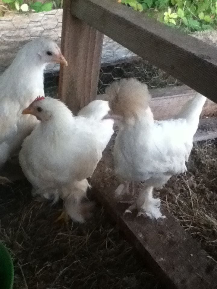 We had two sets of chicks about 1 and a half weeks apart. In Trio A there was a wcb cockerel, a wcb pullet, and a white polish. In Trio B there was a Silkie Mix, a Wcb Pullet and a white polish.