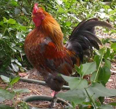 This is Henny Penny who brought the crest genetics to my flock. You might see a little poof on his head. He is daddy to Woodstock.