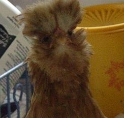 This is Woodstock, the mom, named after the bird on Charlie Brown because as a baby she had little feathers on her head standing up. I knew little about cresting at that time. I just knew Henny Penny didnt have a tumor.