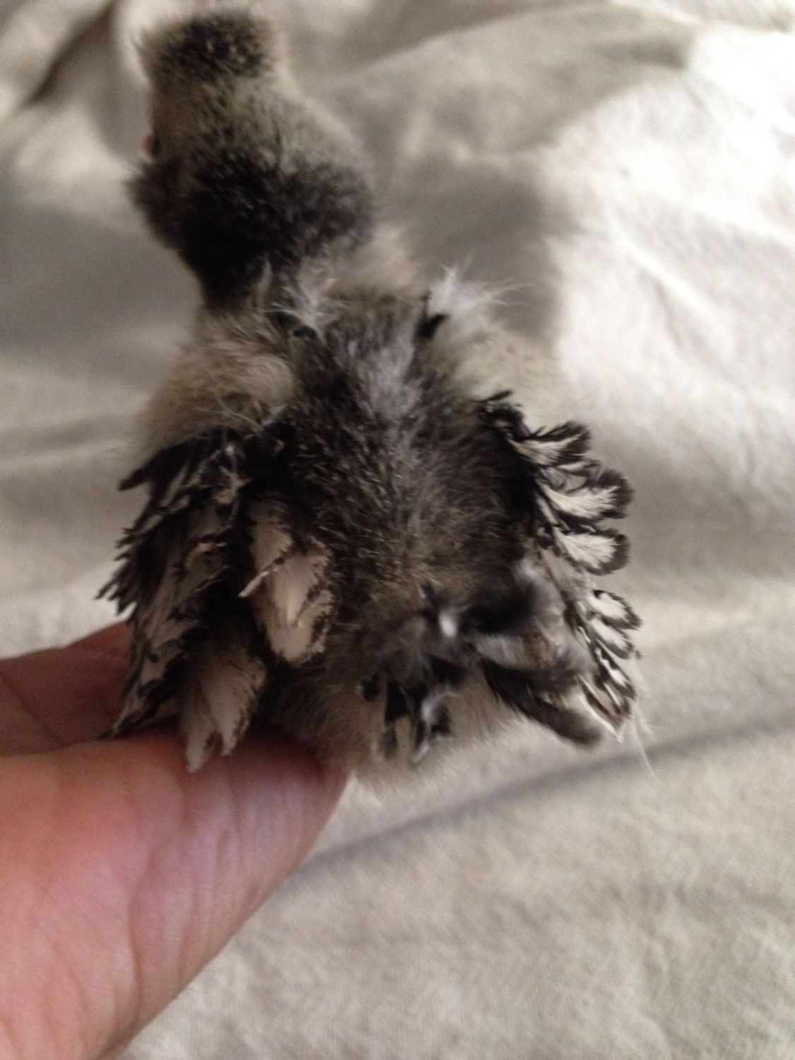 I was given a hatching egg labeled Silkie...one of extras sent with Rhodebar eggs. 'She' was one of two eggs to hatch outta the batch. ( The only other was a Rhodebar Roo! Ughh. Lol). Too make a long story shorter, I got, I didn't know what, so I talked to the breeder and he told me "oooops, you got a SLP"! "Congrats"! Sayyy whaaaat?