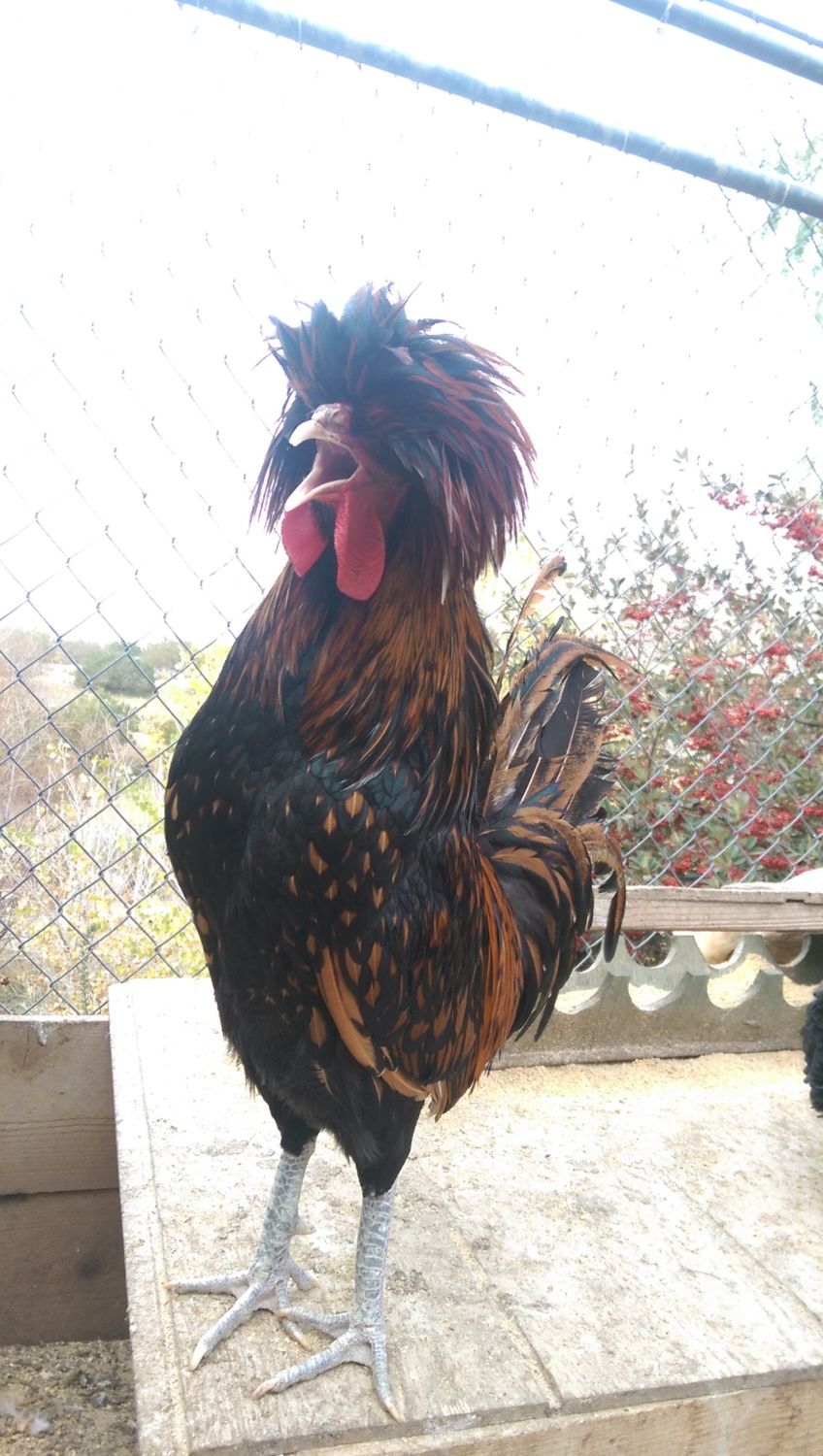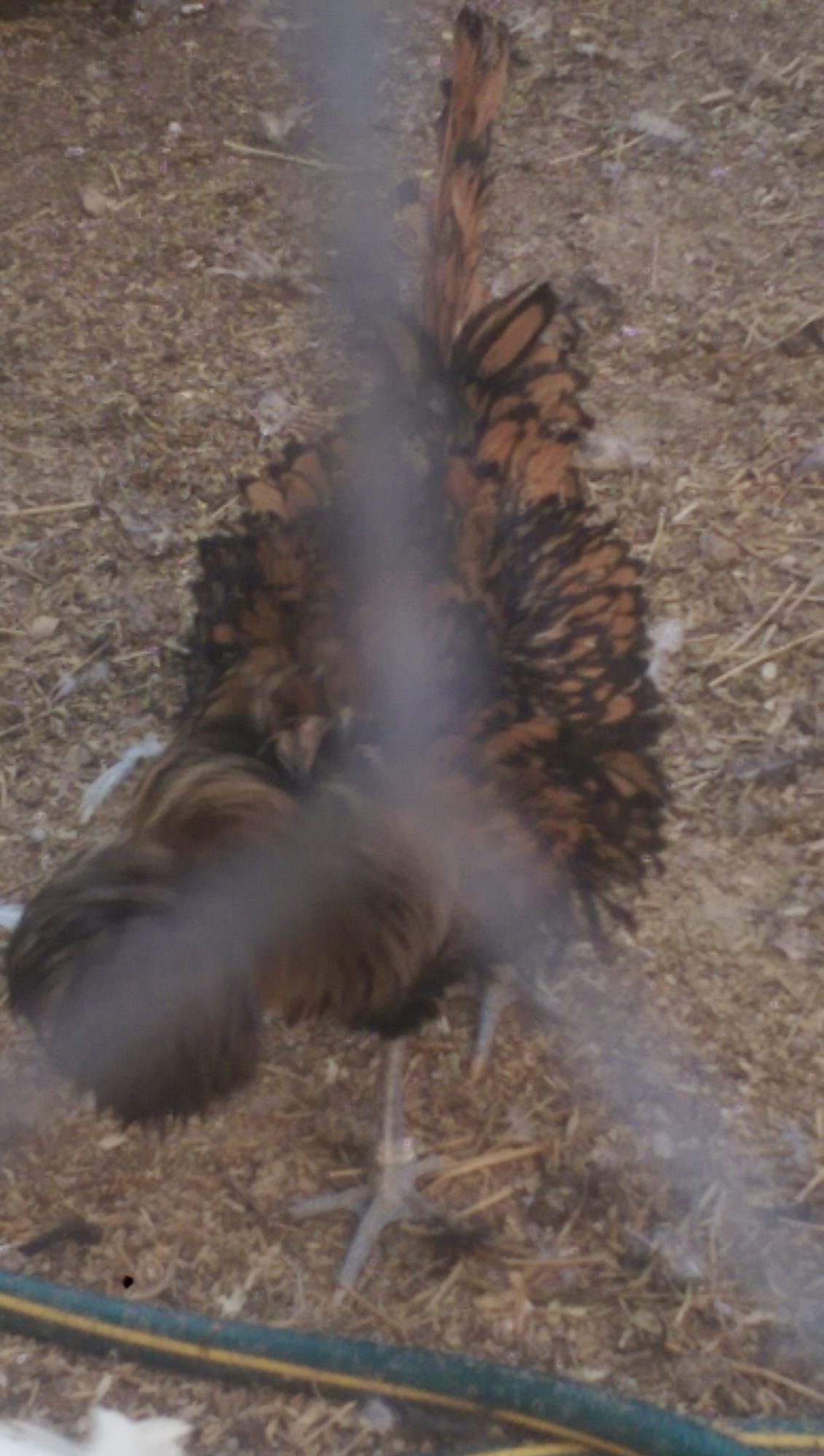 10 weeks now.... I thought Elvis was a boy because of the hairdo. But now I am mot convinced. I tried to identify the saddle feather... But still confused about that too. I heard two weak crows yesterday, I wasn't sure who.... I have 4 polish: 2 silver laced, 2 white crested. All are sweet, but Elvis is the snuggliest one with me. I will not change the name if Elvis turns out to be a girl!