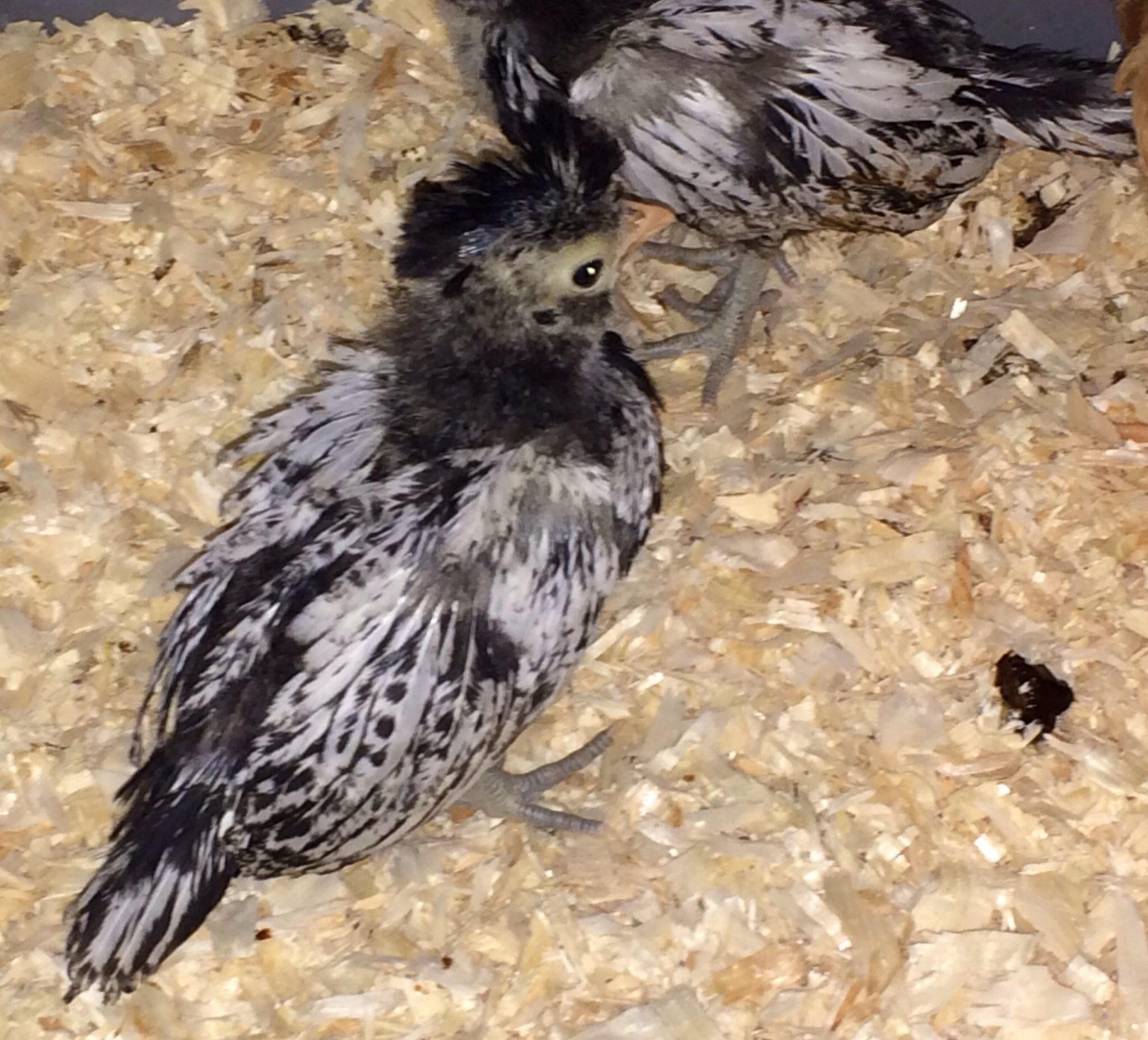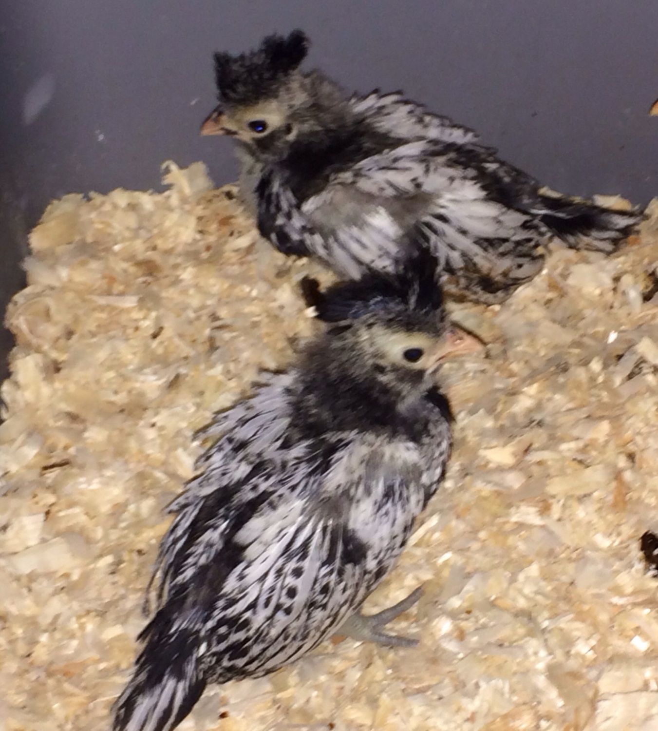 I'll try to take a picture and post. They are silver laced polishes, and are a little over three weeks old. Pretty wirery little birds. My slightest move gets them sprinting like usane bolt in the olympics