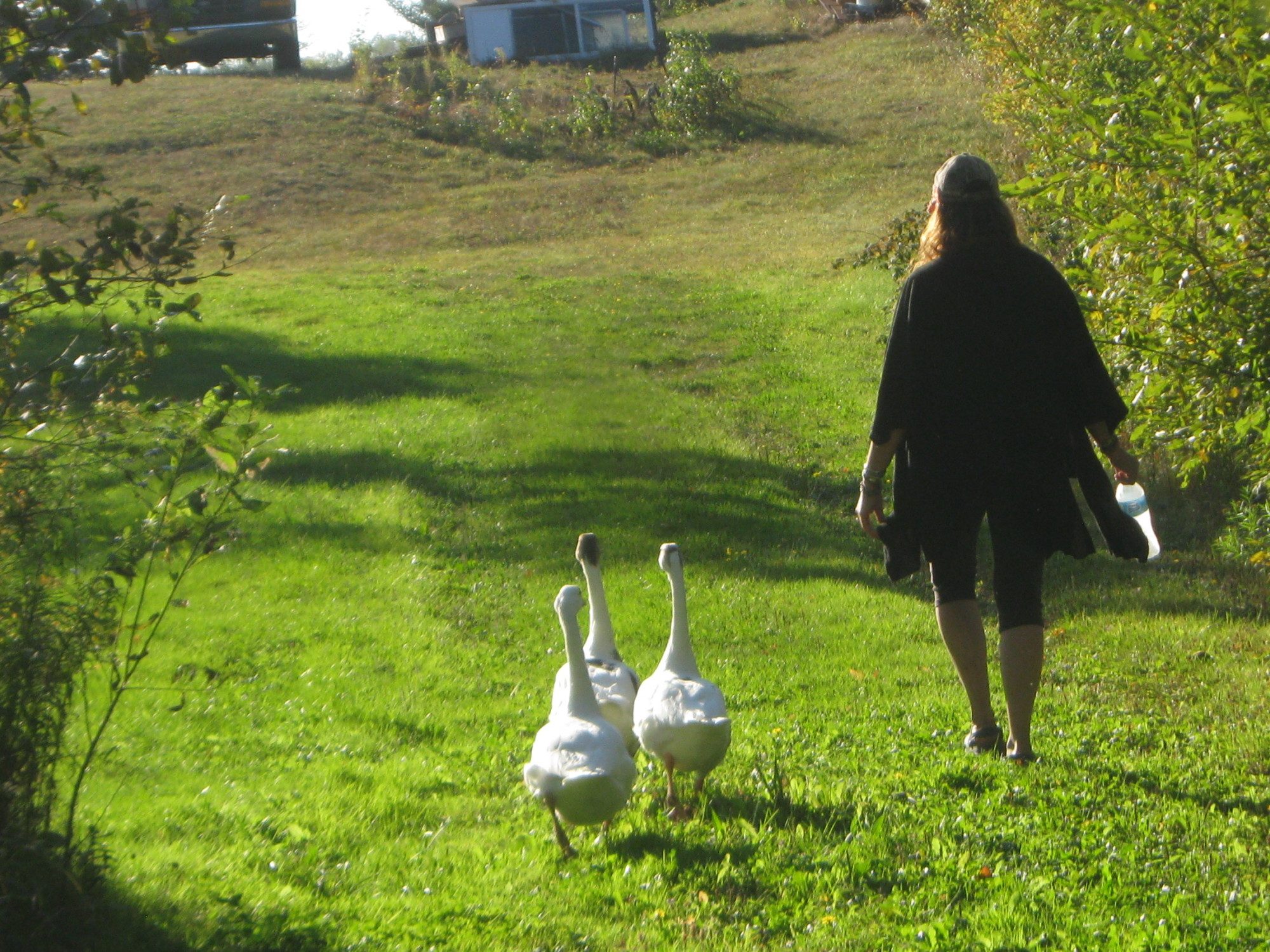 While I completely understand chicken behavior, and pretty much get duck behavior- geese are totally novel to me. So maybe that was just a dominance thing? This poor lady is pretty low down the pecking order, so we'll have to sort that out before spring. I keep my 3 imprinted "babies" in a different barn, as I don't want them picked on or losing their trust- they still think I'm Mom, and I'm happy with that. Want them to always be special.