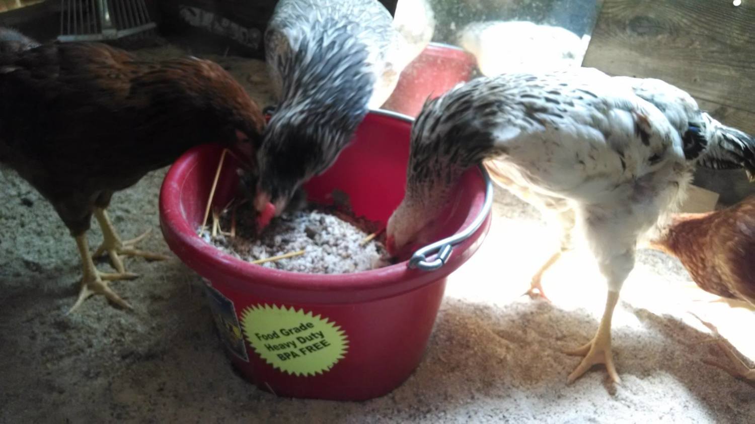 Simple 2" x 2" framework with old cafeteria trays on top of framework to collect the poop at night when chickens are sleeping. Trays are lightweight, made of plastic and easy to clean into a tote to carry out to compost pile.
