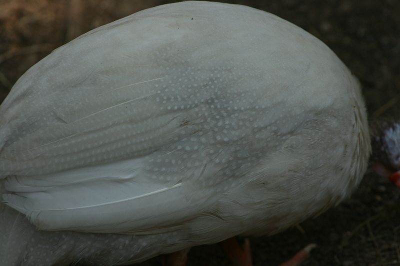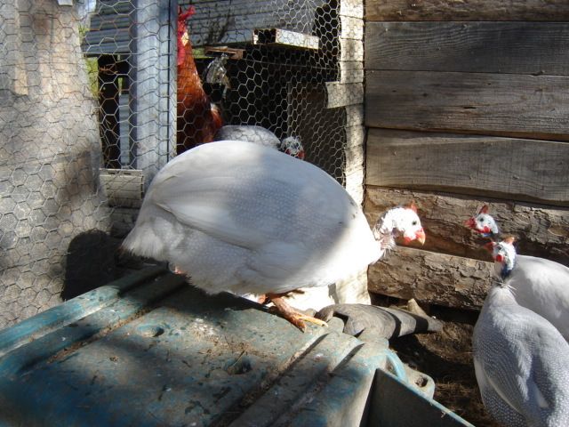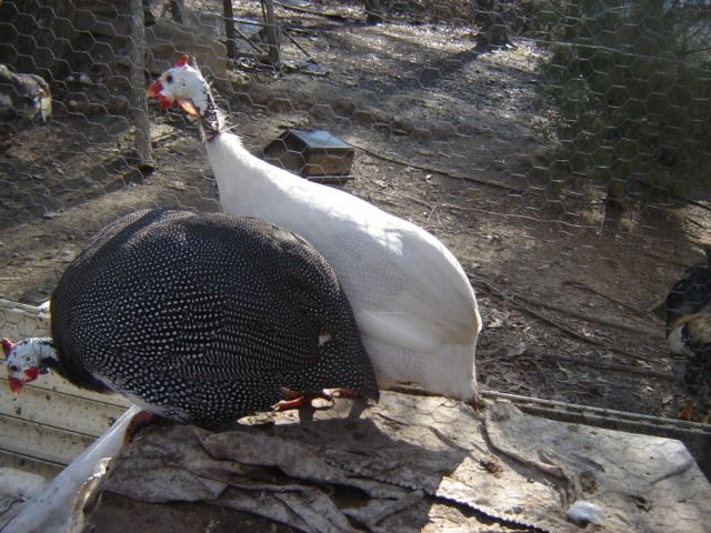 Besides the pearling they also have darker necks than the white guineas. Sorry the pics from today are so far away, my cameras zoom is pretty much broken and the usually friendly and curious birds were not being friendly, lol. The other pics are from when I was borrowing my friends Canon. Sorry if I posted too many pictures also