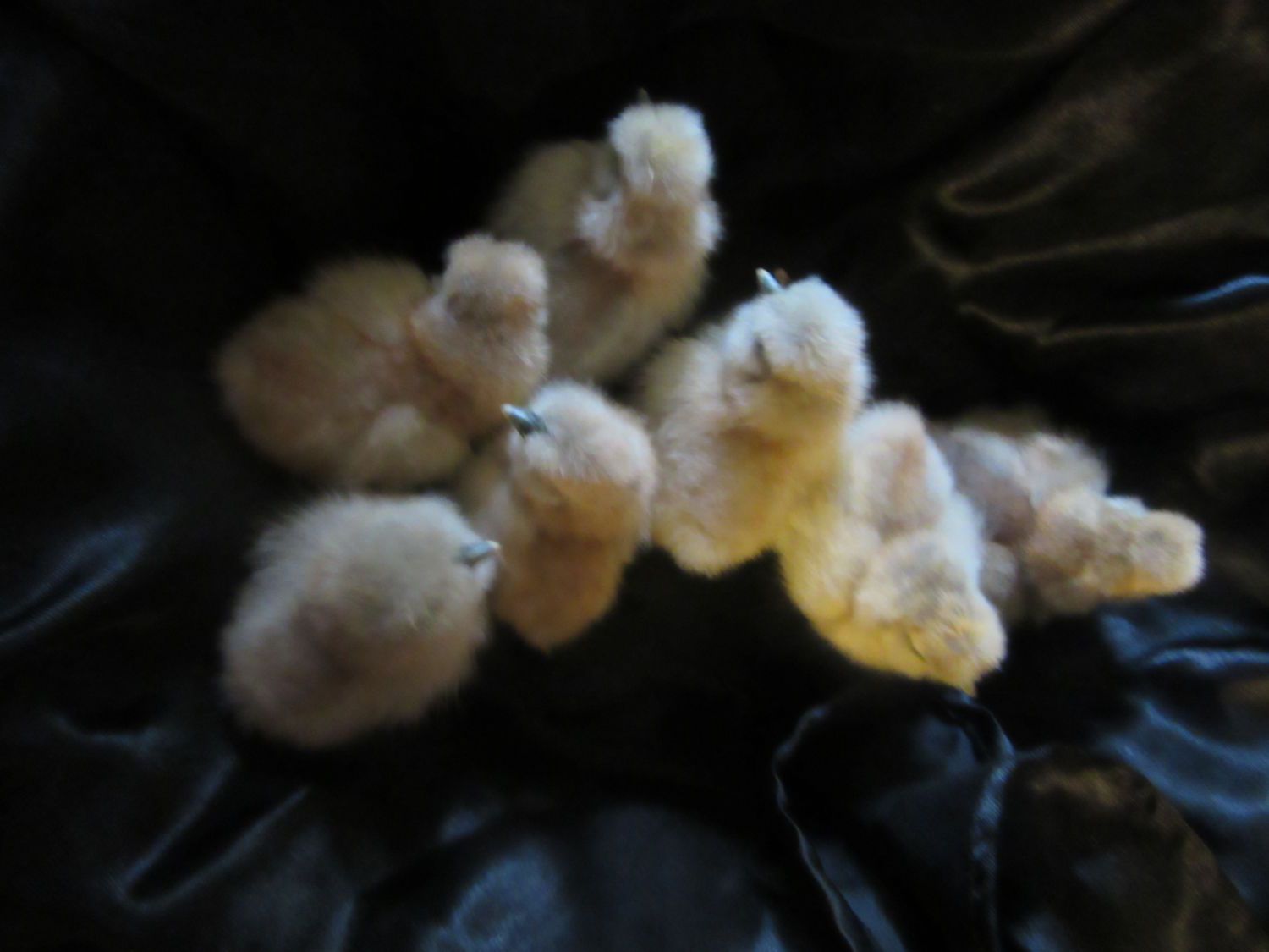 The F2 chicks from Mr. Lav Boy are lovely. He shows a consistency. No wild card genetics showing up so far. Some chicks darker and some lighter but all look good for first hatch. This collection of pic's shows eight of the nine chicks hatched so far.