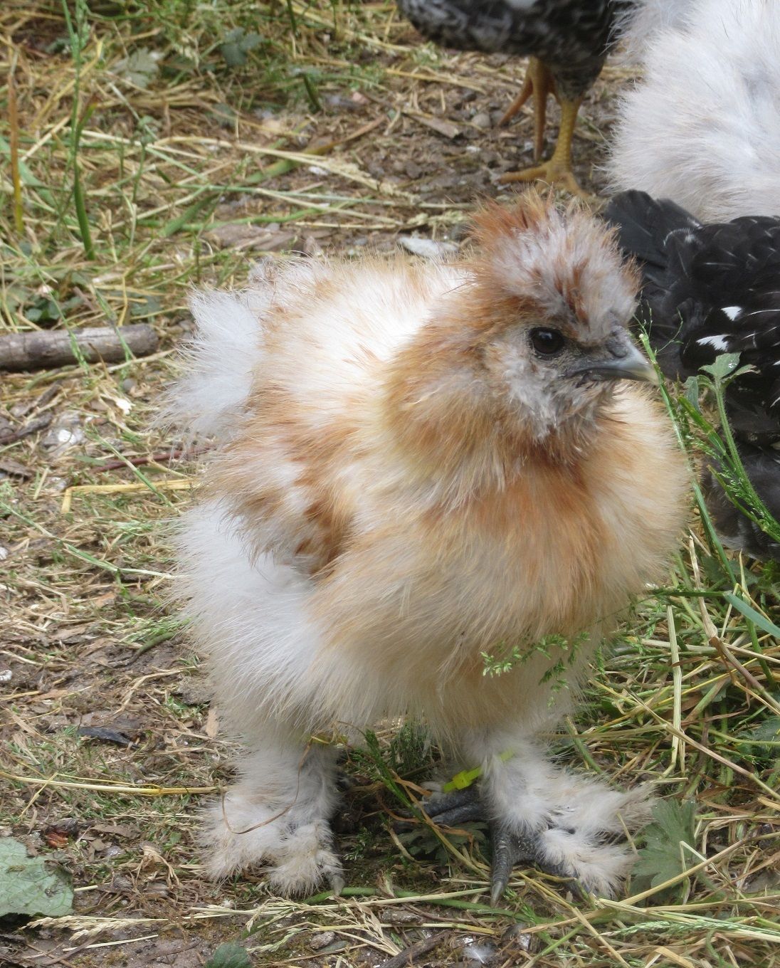 Im sorry about posting here but I cant find any where else. This is obviously not a silkie, but I am confused about its variety. I thought it was porcelain ,however, i now believe that a vitamin deficiency that he had caused the orange color and he should actually be blue? what do you guys think?