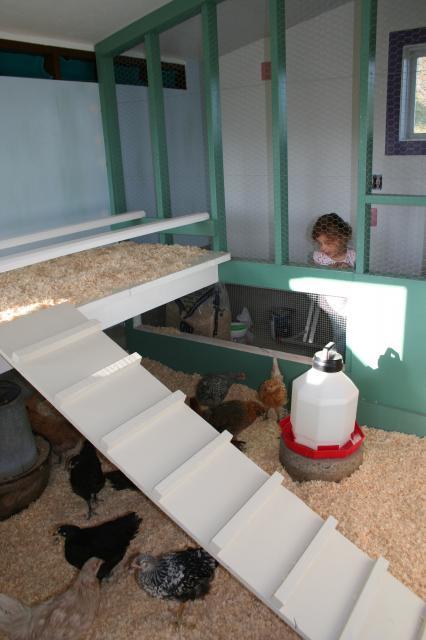 I am new to raising chickens and have a few questions about positioning the roost bars in my coop (still under construction). I am going to have a poop shelf 2 feet up from the floor and 2 feet wide along the wall and am trying to decide how to position the roost bars above it. One thought is to place a bar about 4-6 inches above the outside edge and another 1 foot up x 1 foot back from that leaving about a foot behind the upper bar to the wall. That puts the bars at 28" and 38" above the floor. I plan to use the deep litter method so will have at least 4" of shavings on the floor. There will be a ladder of sorts leading up to the low bar. I plan to get standard size breeds. My question is: will a chicken roosting on the top bar simply catapult off, over the lower bar, to the floor or will it hop down onto the lower bar and then onto the floor? I am worried about leg/foot injuries if a chicken jumps down the whole 38" to the floor. If that is the case, I may opt to place both bars at the same level 4-6" above the shelf. I know I am probably overthinking this, but I would like to know your opinions based on experience.