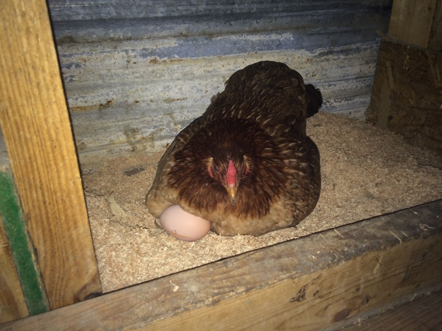 So one of my game hens has decided to sleep in the nesting boxes under 2 eggs. And I put 4 eggs in her face, I went to go feed my other chickens I came back in and they were under Her? She's gone broody before the same way.