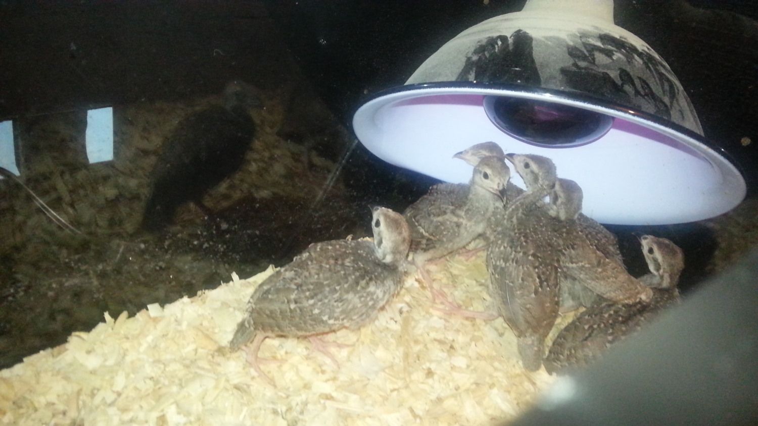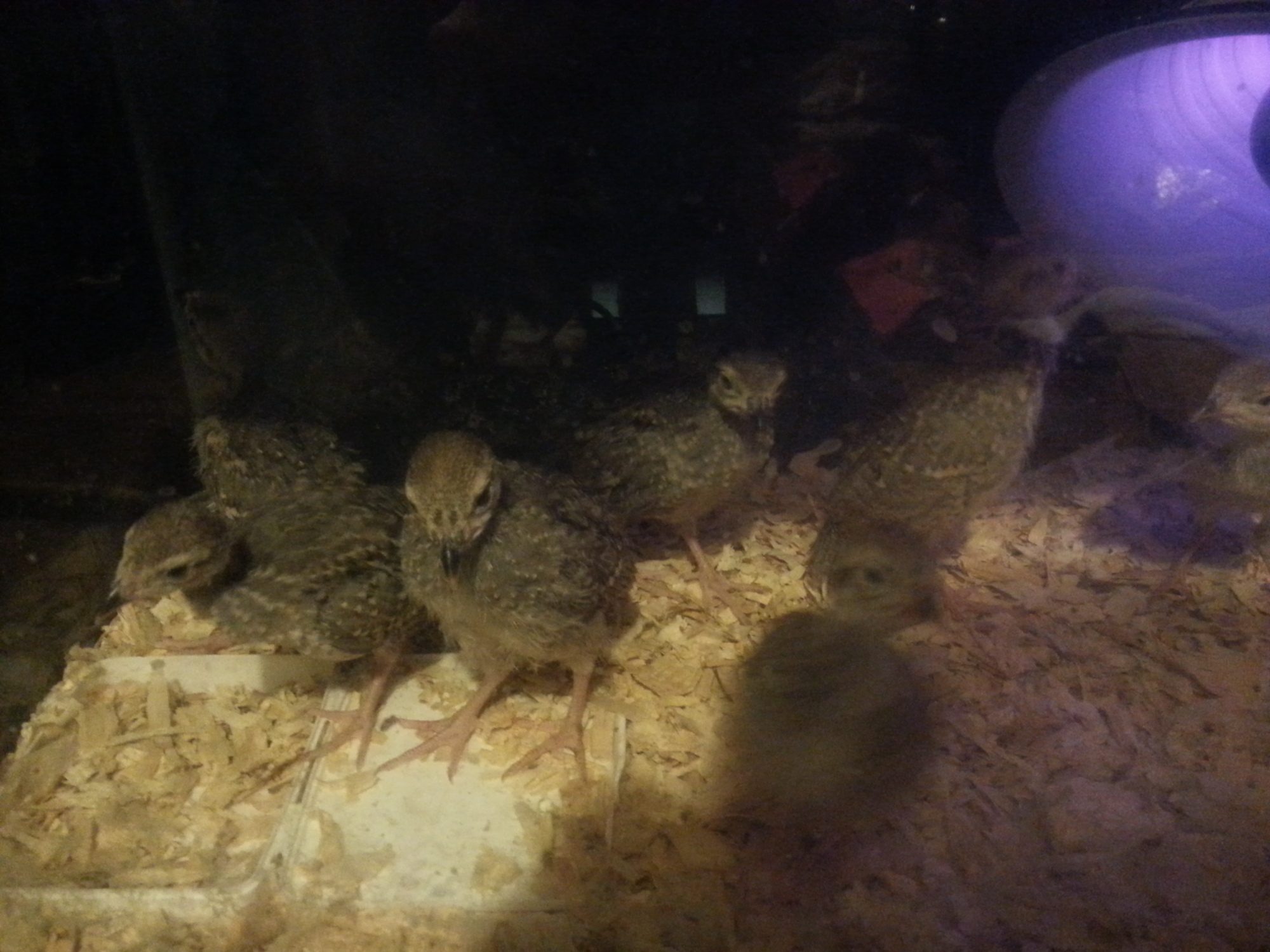 I got some pics! I tried to take a pic with flash on, but they freaked out so badly they flew out of the brooder! I had to spend 15 minutes looking for all of them. These little things are so paranoid, lol.