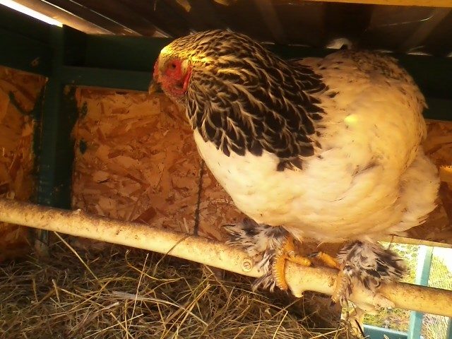 An acquaintance of mine found this chicken wandering the streets in the city ghetto. I drove the 20 miles to come and rescue her! She is very different looking, both in stature and appearance from my 6 buff orpingtons! To me she looks similar to a langshan, but I am not positive. Here are some pics: