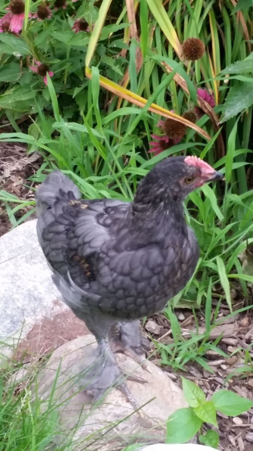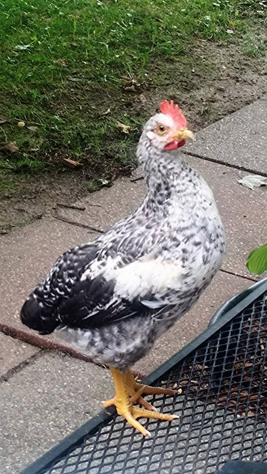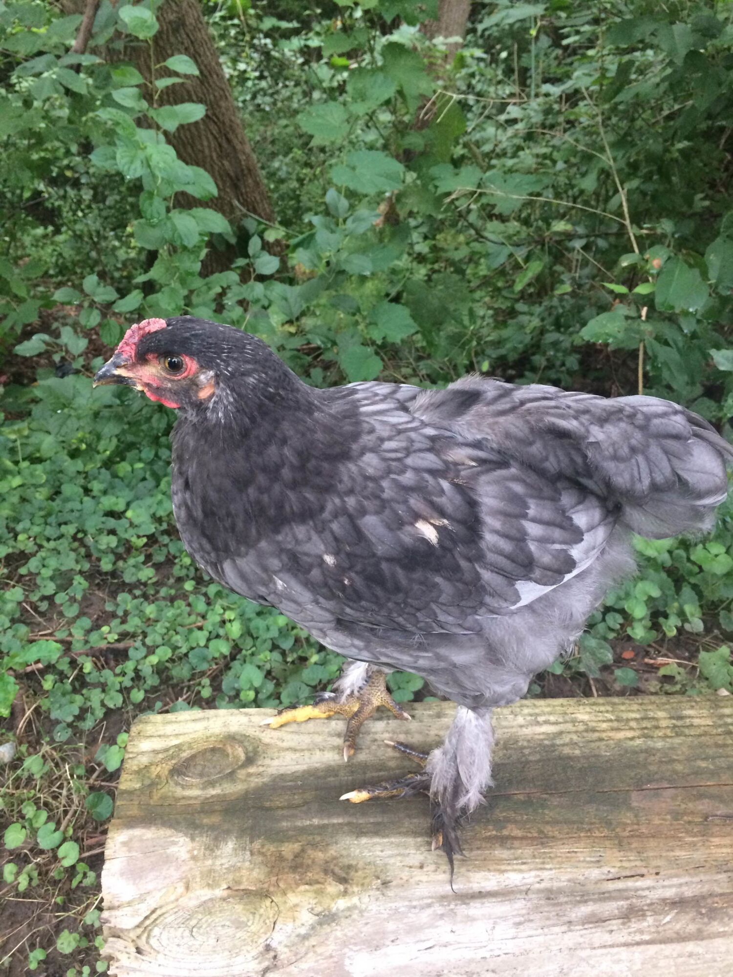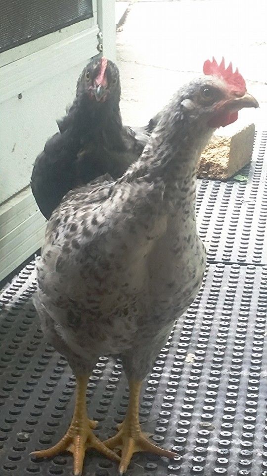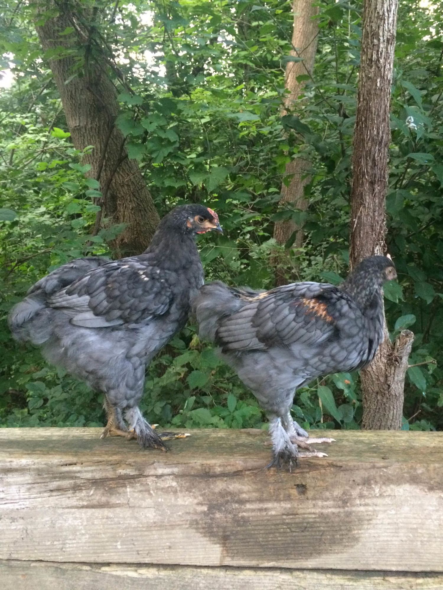 Hi everyone! We have 5 chickens whom we love very much, and I swear that I heard a wimpy attempt at a crow a few days ago. They are all around 7-8 weeks old. We've narrowed down the possible roos to 2- Little Fluffy the Brahma/Marans mix, and Marble the Marans. Little Fluffy developed much slower than her sister, who is the biggest chicken we have so far, so she is named Big Fluffy. Little Fluffy also is starting to get some bright amber colored feathers on his/her back and wings that Big Fluffy did not. Marble seems to be having the most behavioral changes, having multiple stand offs a day with the others. Plus Marble just looks lean and manly to me! Any help you all can give would be appreciated! Enjoy the pictures!..We only take a million of them a day