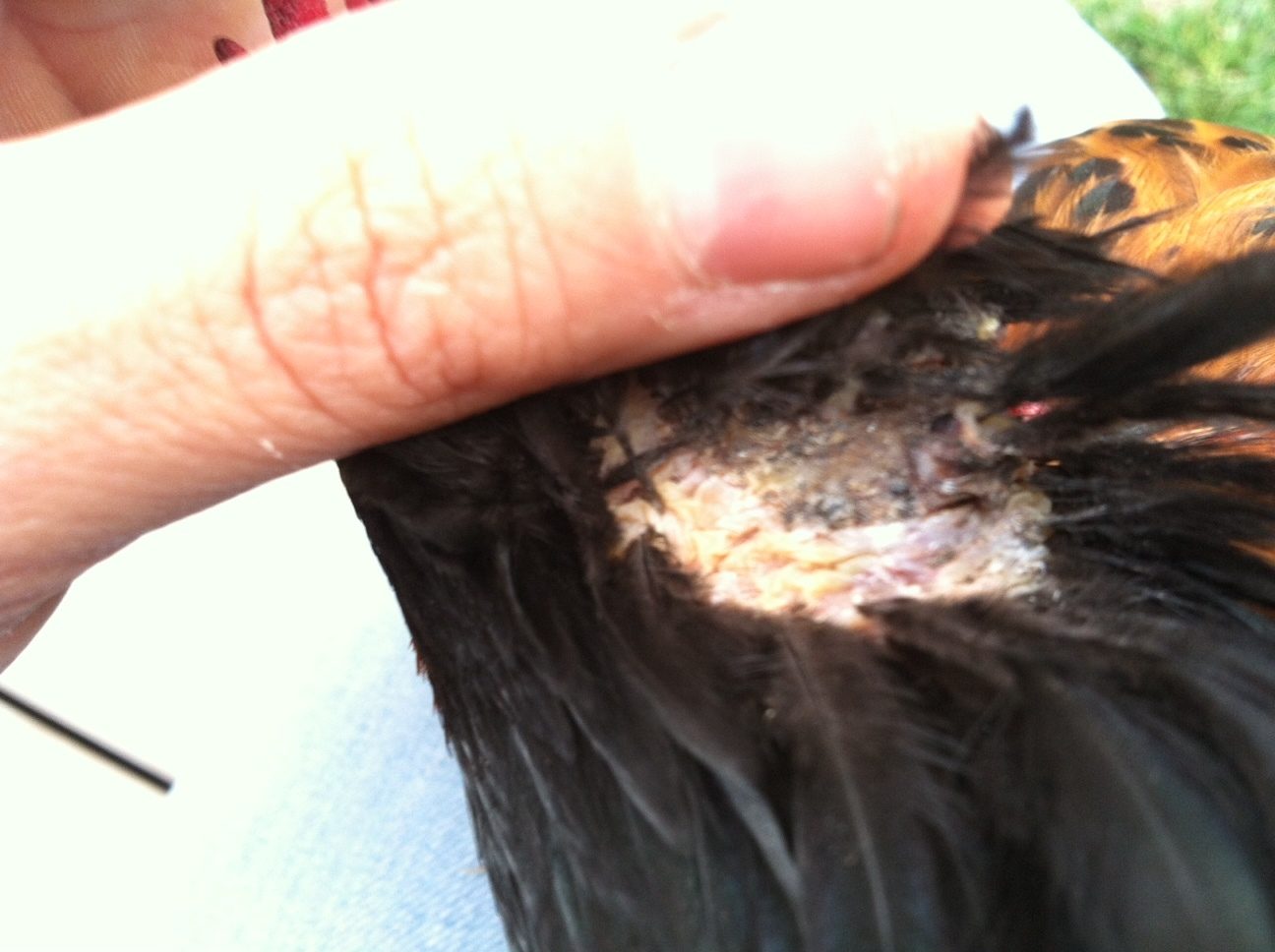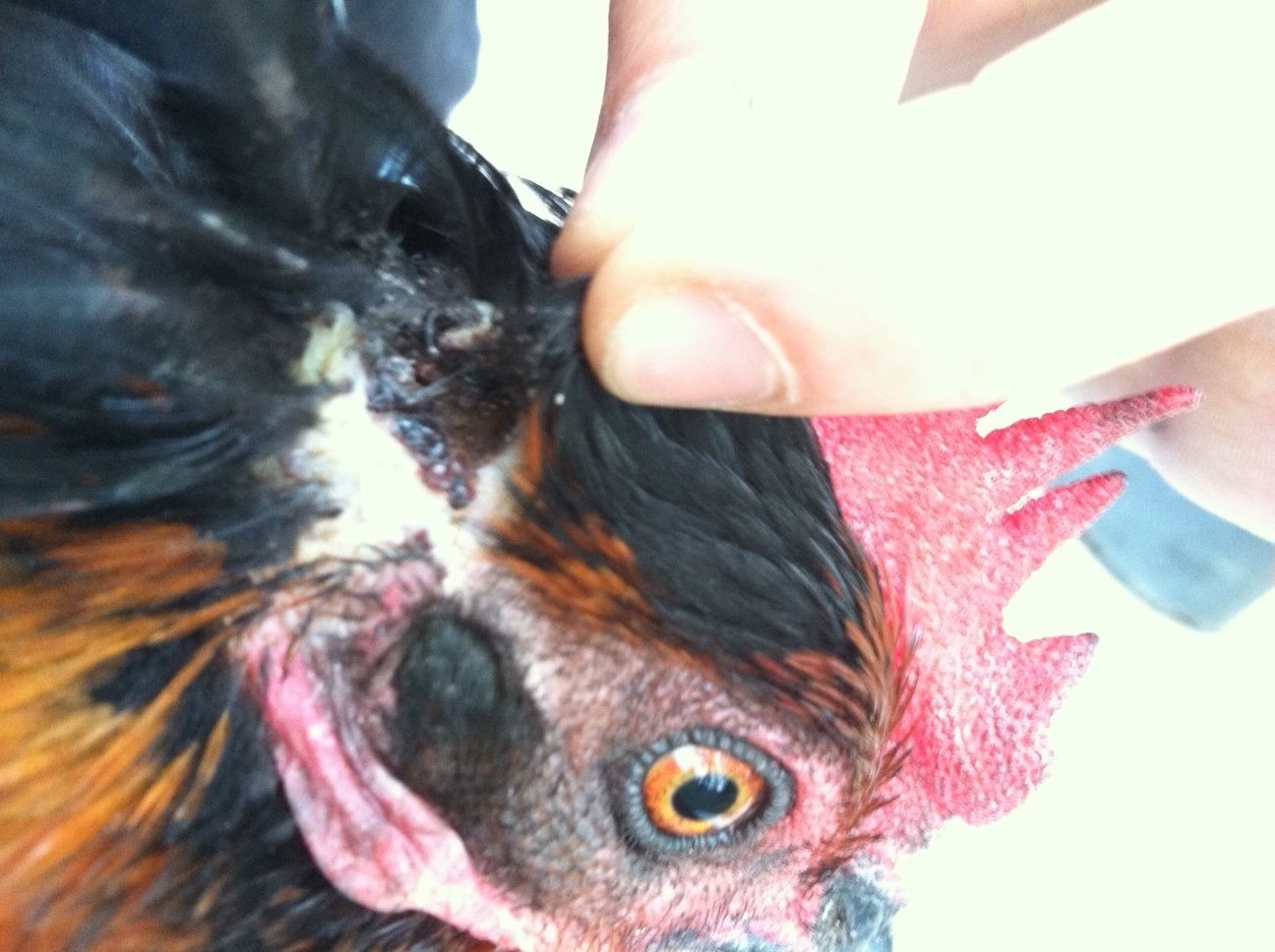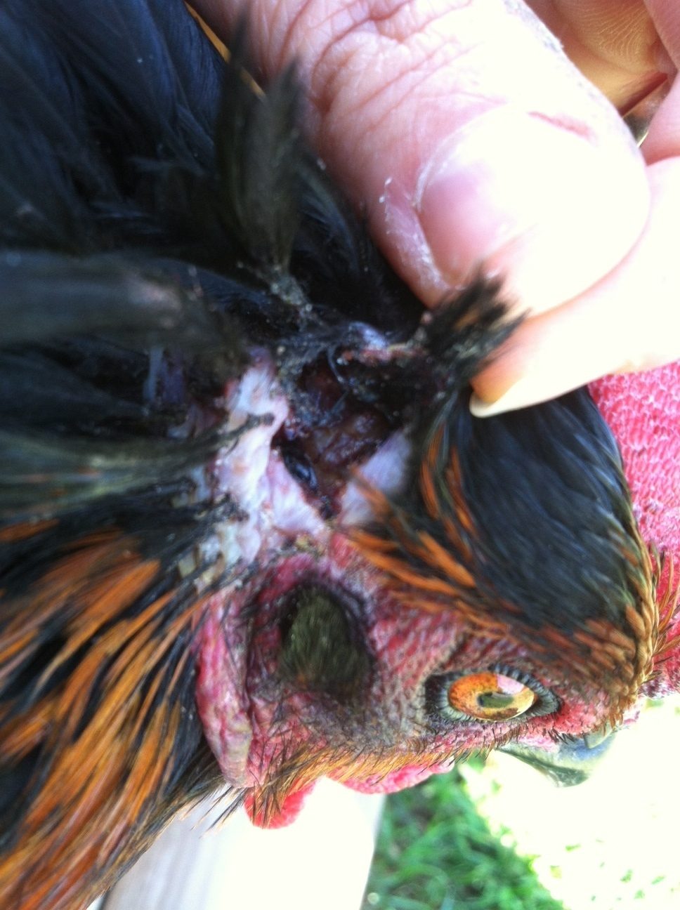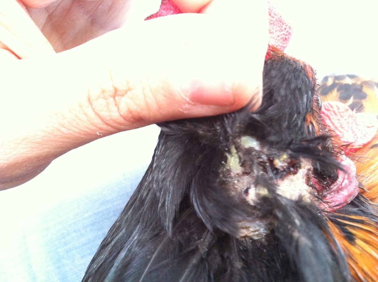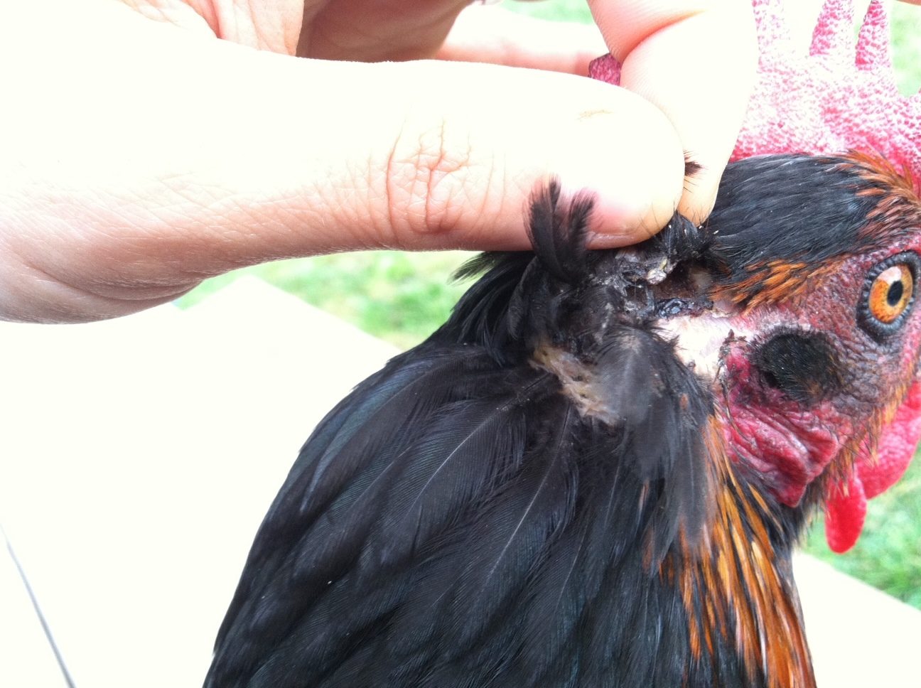 I would like to use this thread for anyone that may be caring for wounds on their chicken, what they might expect during an optimistic healing process. At least I'd like this to be a happy ending, but I am uncertain as of now. I'm using my camera phone right now, my regular camera doesn't work.