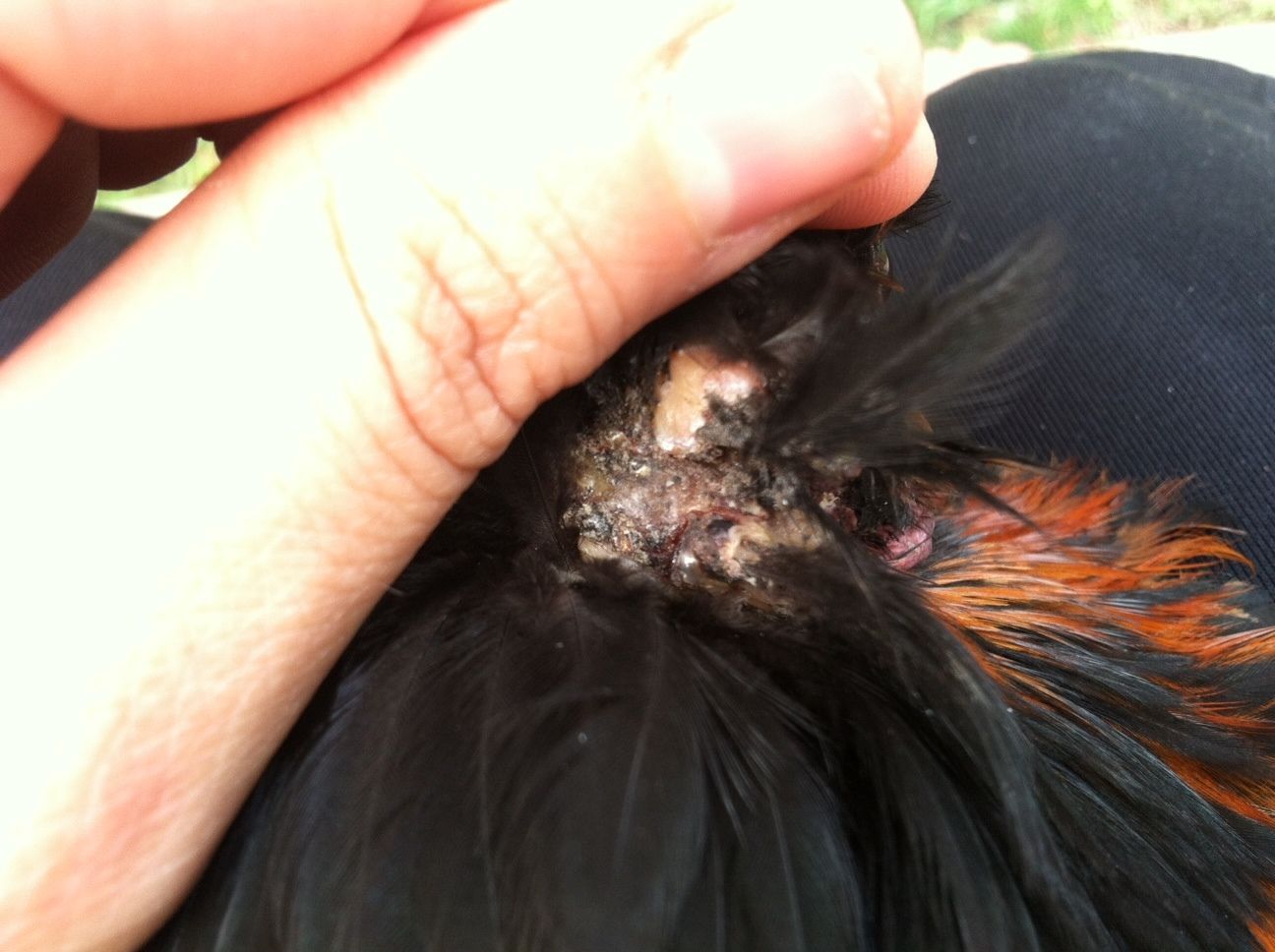 So what I'm doing now is letting her in the coop at night and keeping her separate during the day so she gets her antibiotics. She seems very anxious to get out to be with her sisters, but I try to bring her as many treats to keep her happy. My hen seems unaffected by it, she's scratching around like usual, healthy appetite, maintaining order (she's the top ranking hen) and the others haven't been pecking at it, so there's no need to put her down. I've been reading a lot of threads on here about wound care and bookmarked some... So what do you all think? Should I clean it (or attempt to)? My fear is cleaning it and having it open for a potential new infection.