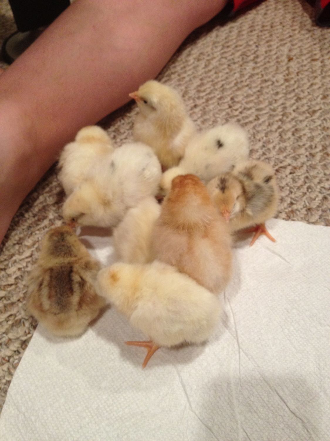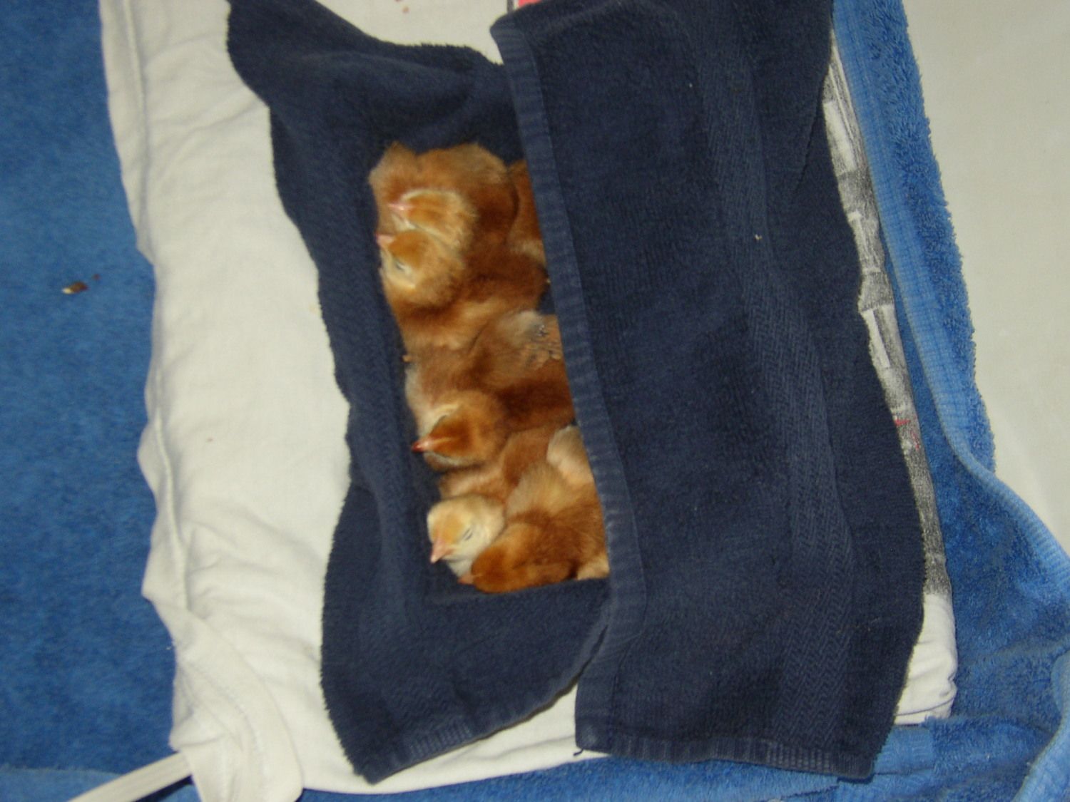 Jun 19, 2012 #16 RonC Crowing 13 Years Spirit Joined Feb 28, 2012 Messages 1,517 Reaction score 153 Points 296 Location East Texas An old pic, mine are almost grown now. Nap time in the "nest".