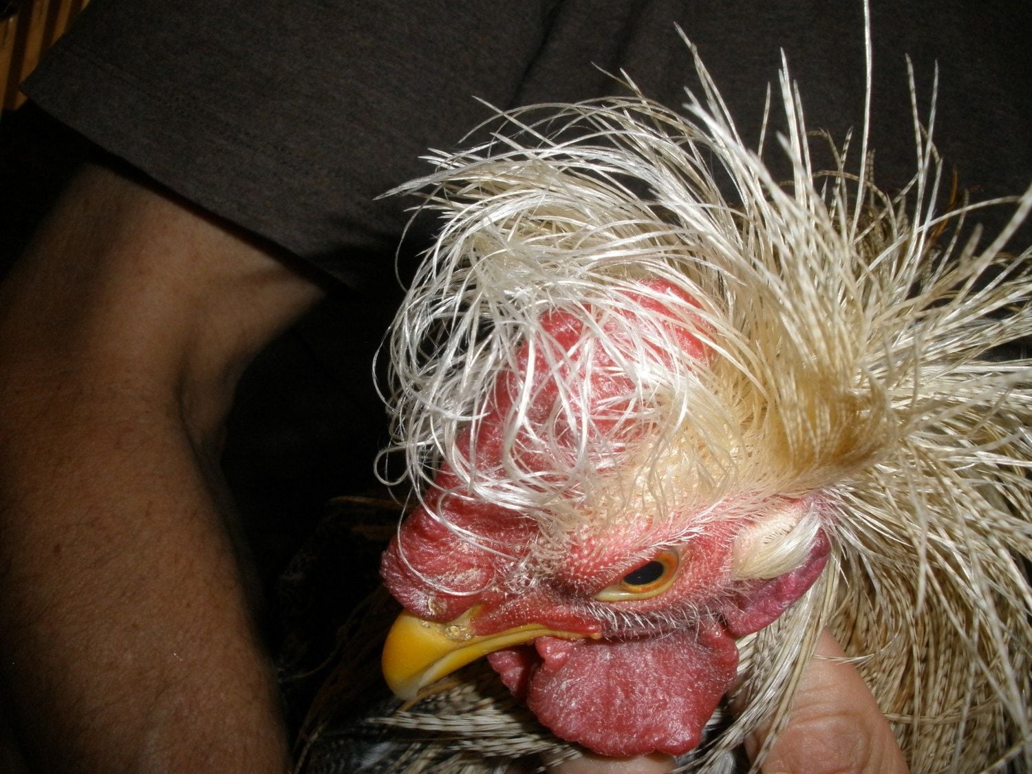 most all of my good males are like that Michael, anywhere from 1/2 " to maybe 2" on the browI was out looking at birds today as I was feeding and noticed that one of my light brown cockerels has really long 'eyebrows' as we call them. The feathers on either side of the comb that are normally tiny, well his are about 2" long and go upwards and curl. Now I am thinking about crossing him to the polish instead of the golden because the head feathers are so long. I will try to get a decent pic to show what it looks like