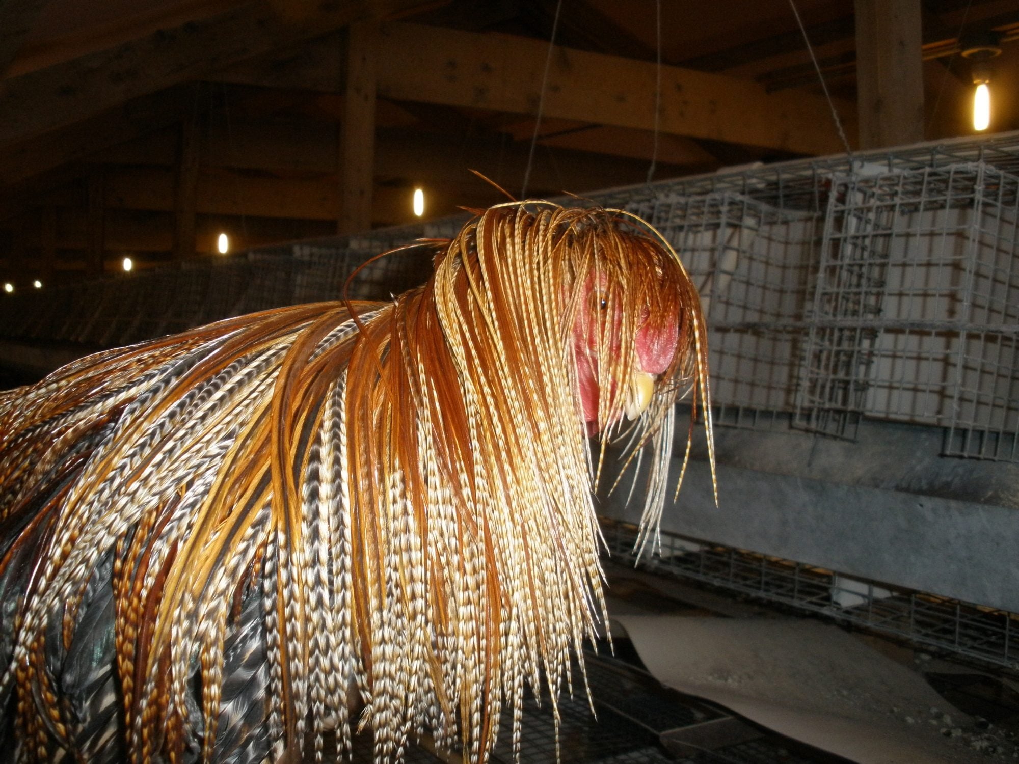 Yes, I have noticed the same 'eye brow feathers' thing in my long tails I raise. I have also seen very extreme examples of this in birds heavily selected for hackle and saddle feathers as seen in the two pictures belowI was out looking at birds today as I was feeding and noticed that one of my light brown cockerels has really long 'eyebrows' as we call them. The feathers on either side of the comb that are normally tiny, well his are about 2" long and go upwards and curl. Now I am thinking about crossing him to the polish instead of the golden because the head feathers are so long. I will try to get a decent pic to show what it looks like