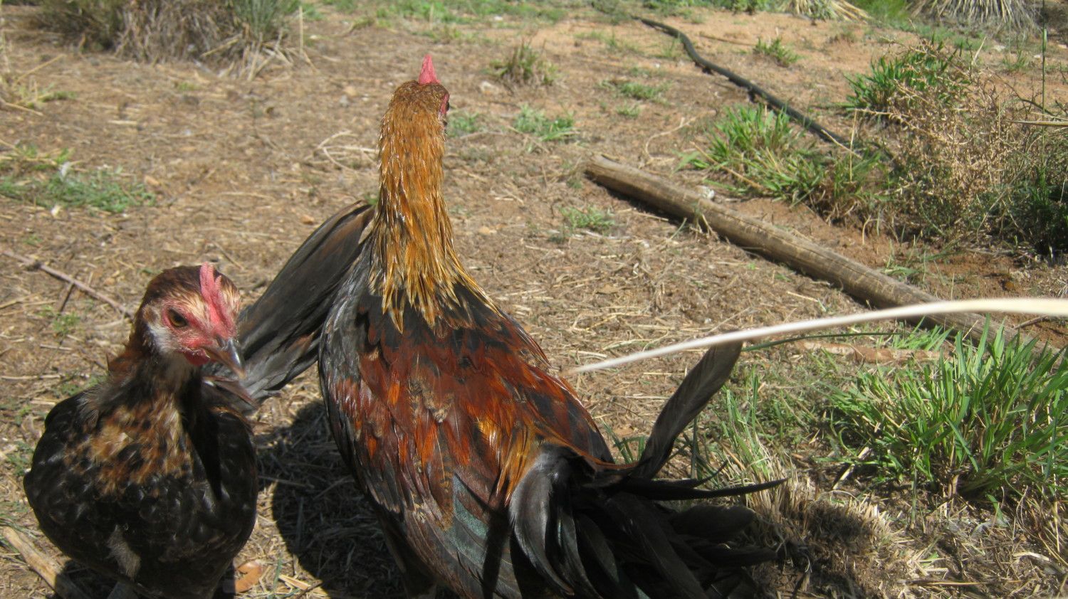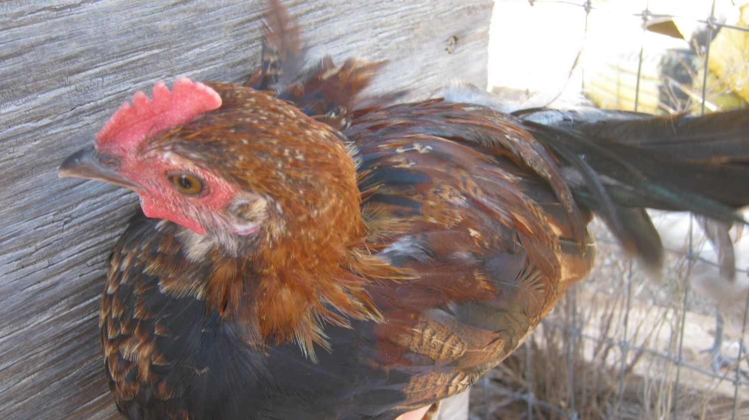 Thxs, the oldest hen has a lovely tail and she and the roo are really friendly, when I try to catch the younger hen I keep tripping up because rather just stand there and watch me, lol they a